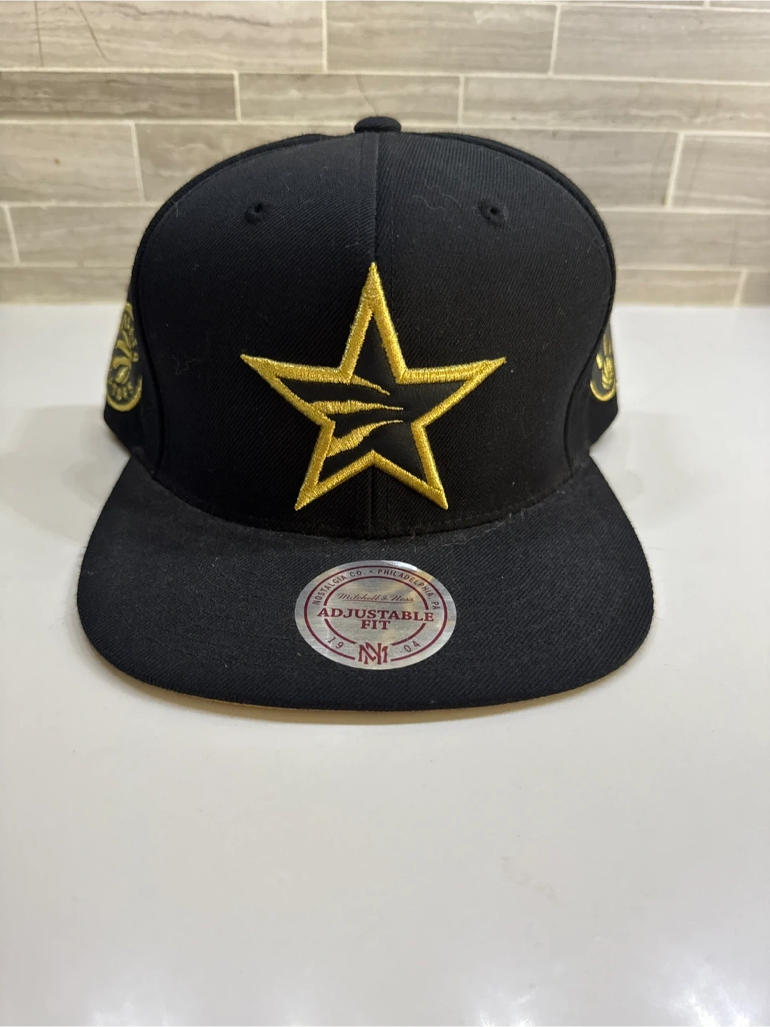 Selling a Mitchell & Ness Toronto Raptors adjustable hat. It's black with gold accents and features the Raptors logo. Great for any fan!