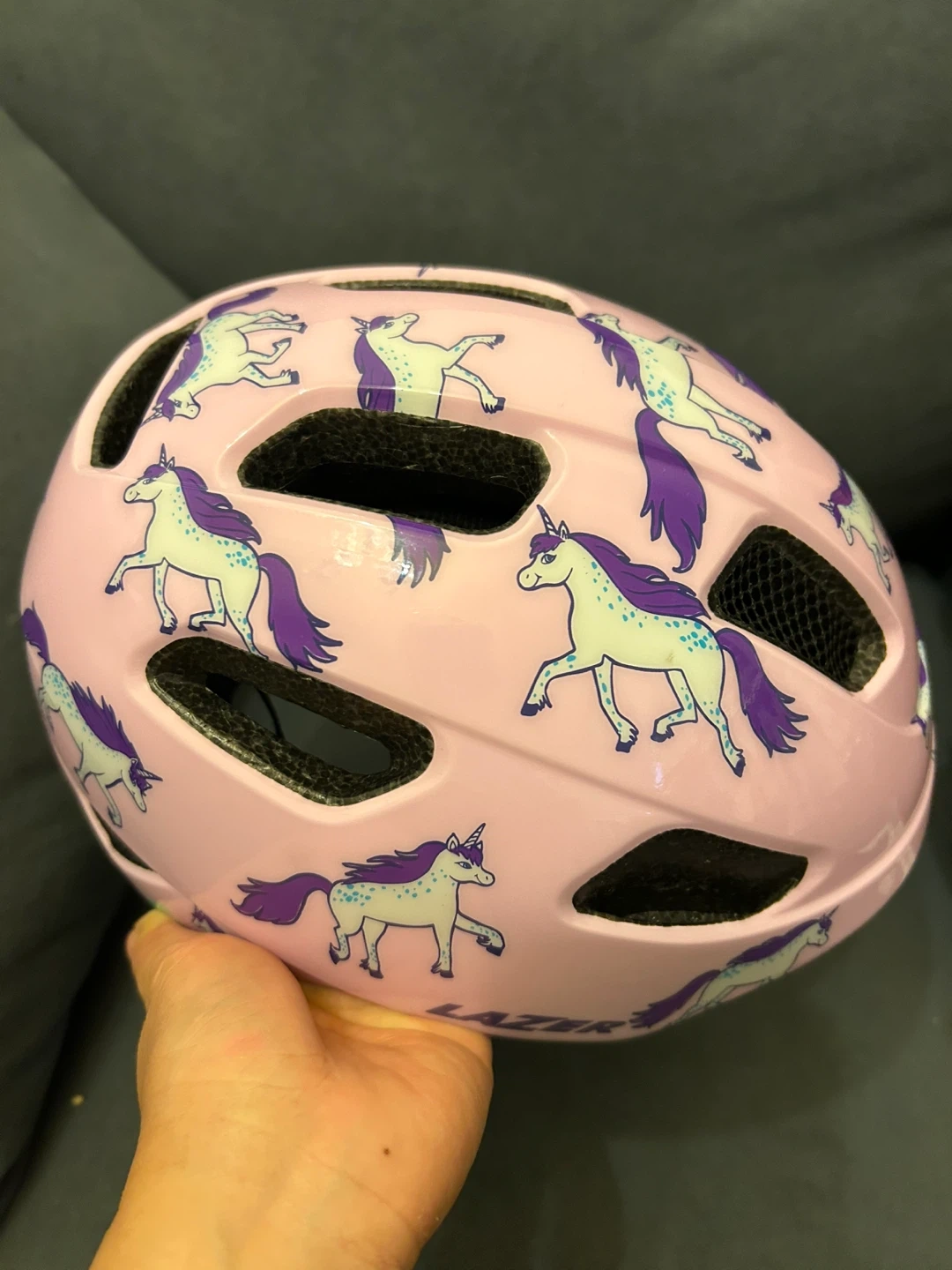 Selling a Lazer kids bike helmet in a cute unicorn design! The size is 50-56cm. It's in great condition and ready for your little one's adventures.for age 3-5years old