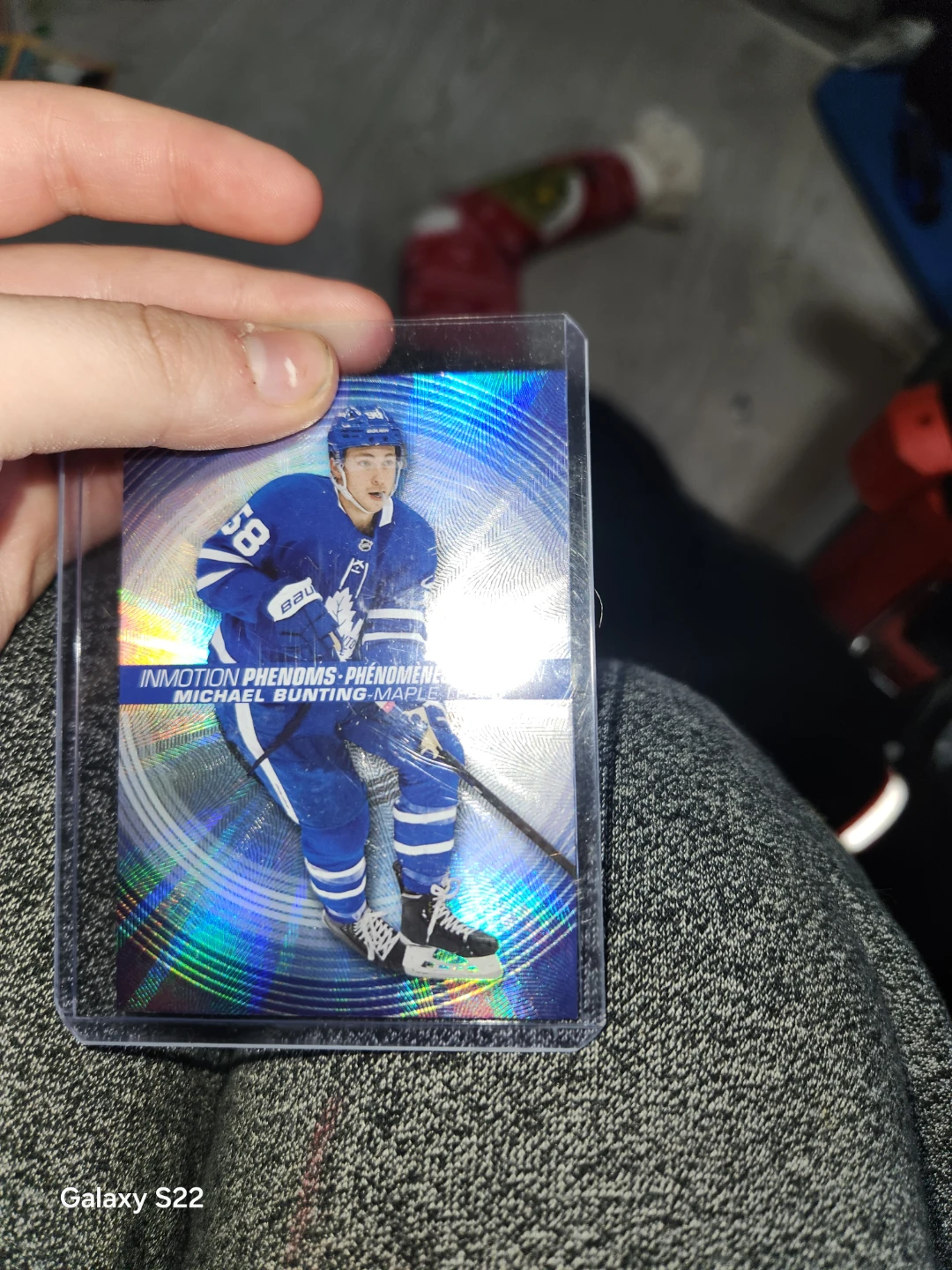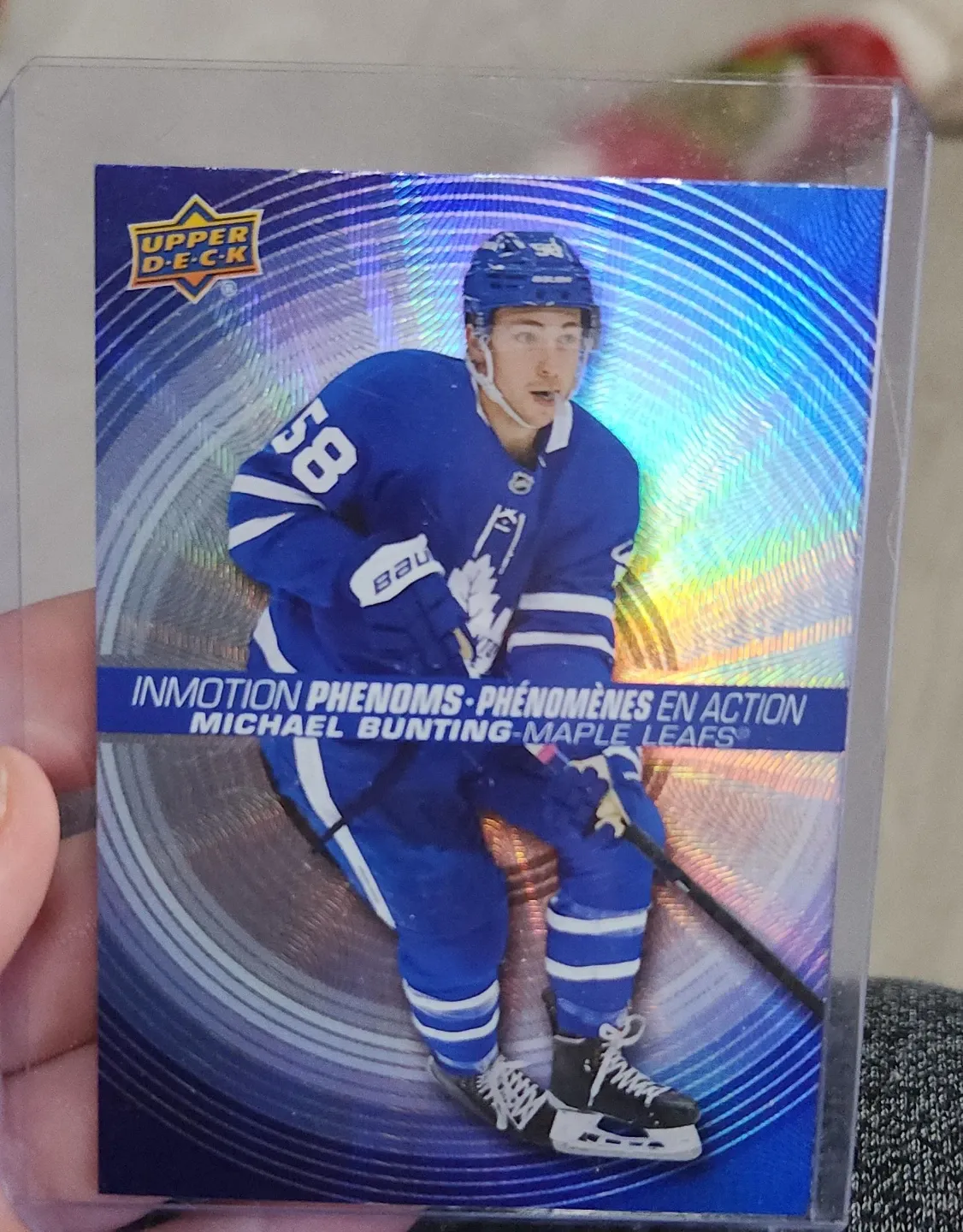 Selling a Michael Bunting Inmotion Phenoms Upper Deck hockey card! He is a left wing/ailier gauche for the Toronto Maple Leafs. Great addition to any hockey card collection!