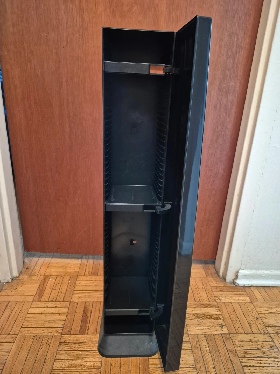 Selling a black Atlantic CD storage tower in great condition. It's perfect for organizing your media collection and keeping things tidy. The tower has shelves to hold your CDs and It's a sleek and practical addition to any entertainment space