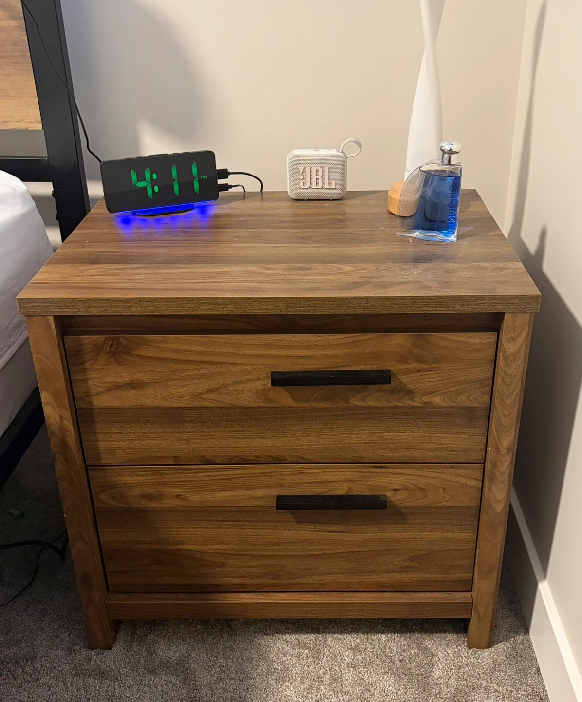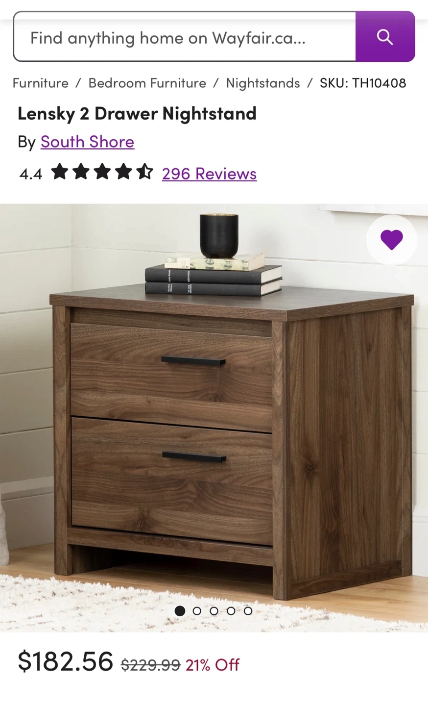 Selling a South Shore Lensky 2-drawer nightstand in good condition. It's a lovely piece for any bedroom!