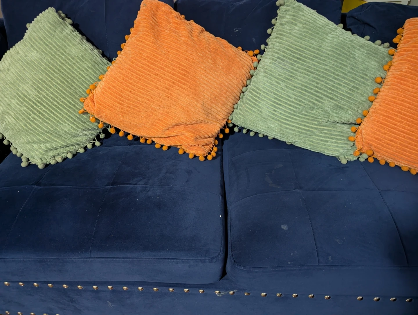Corduroy Throw Pillows - Green & Orange (8 cushions)