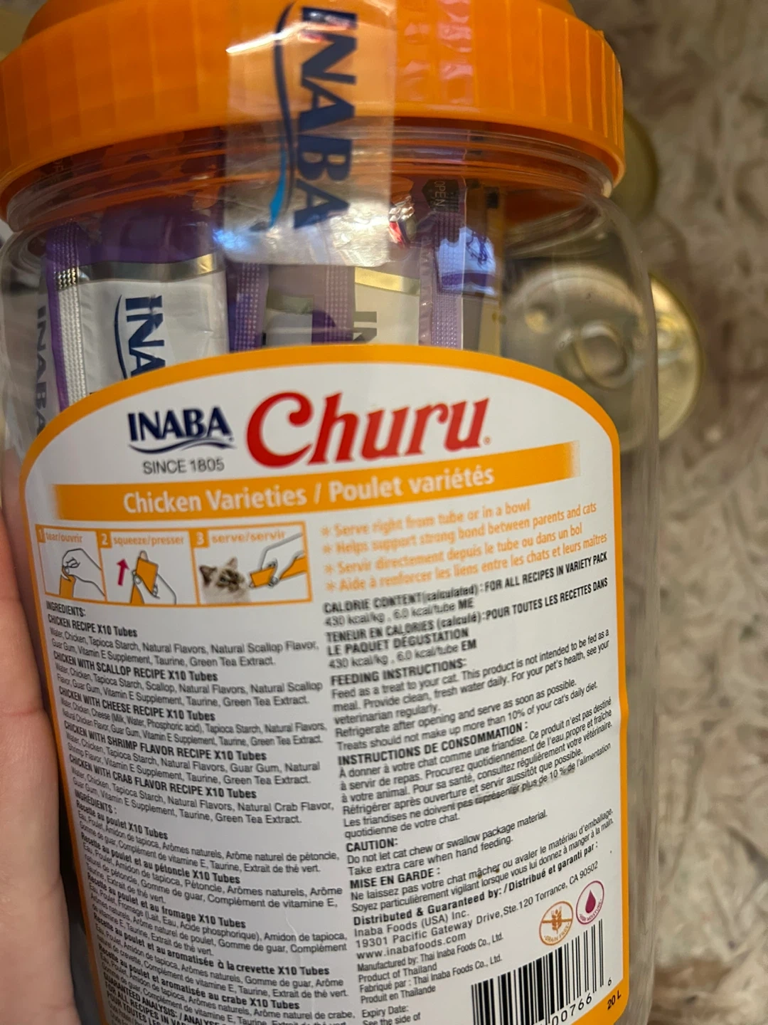 Selling a mix of Royal Canin kitten food and Inaba Churu cat treats! The Royal Canin is for kittens, and the Churu treats are great for any cat. The bag of Royal Canin is 400g.
