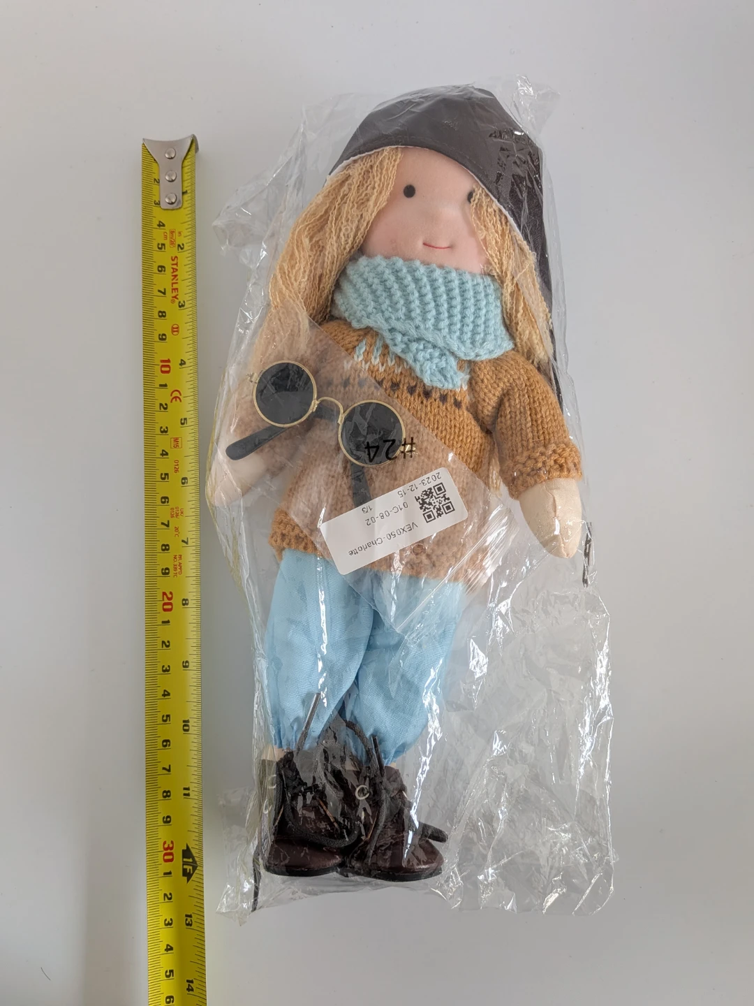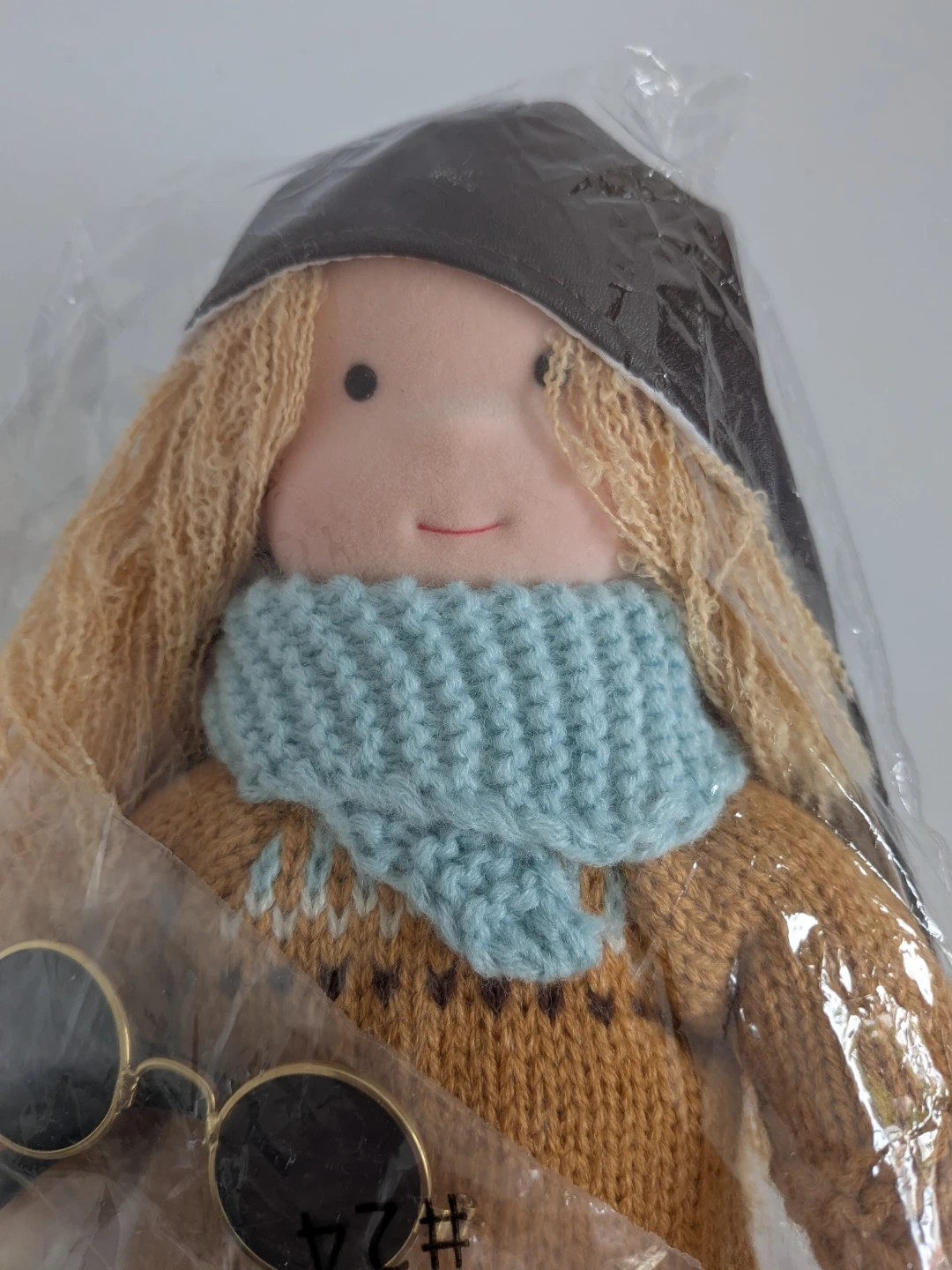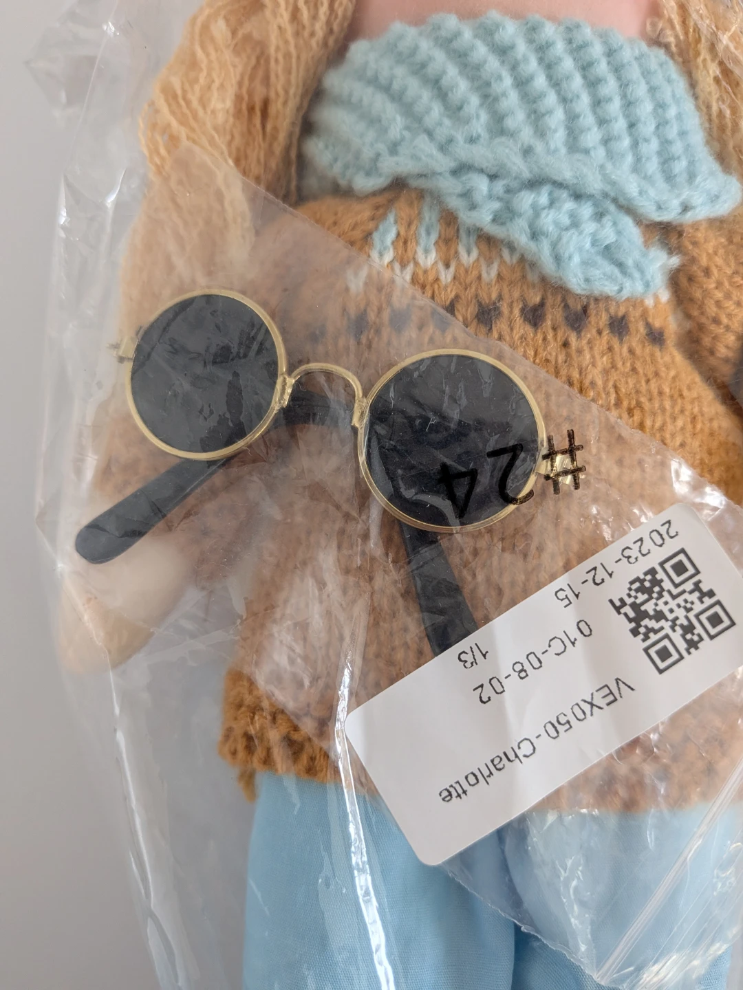 This is a VEX050-Charlotte doll, still new in its original packaging! It's such a cute doll with a unique style, complete with a little scarf and sunglasses. Perfect for adding a bit of charm to any room.