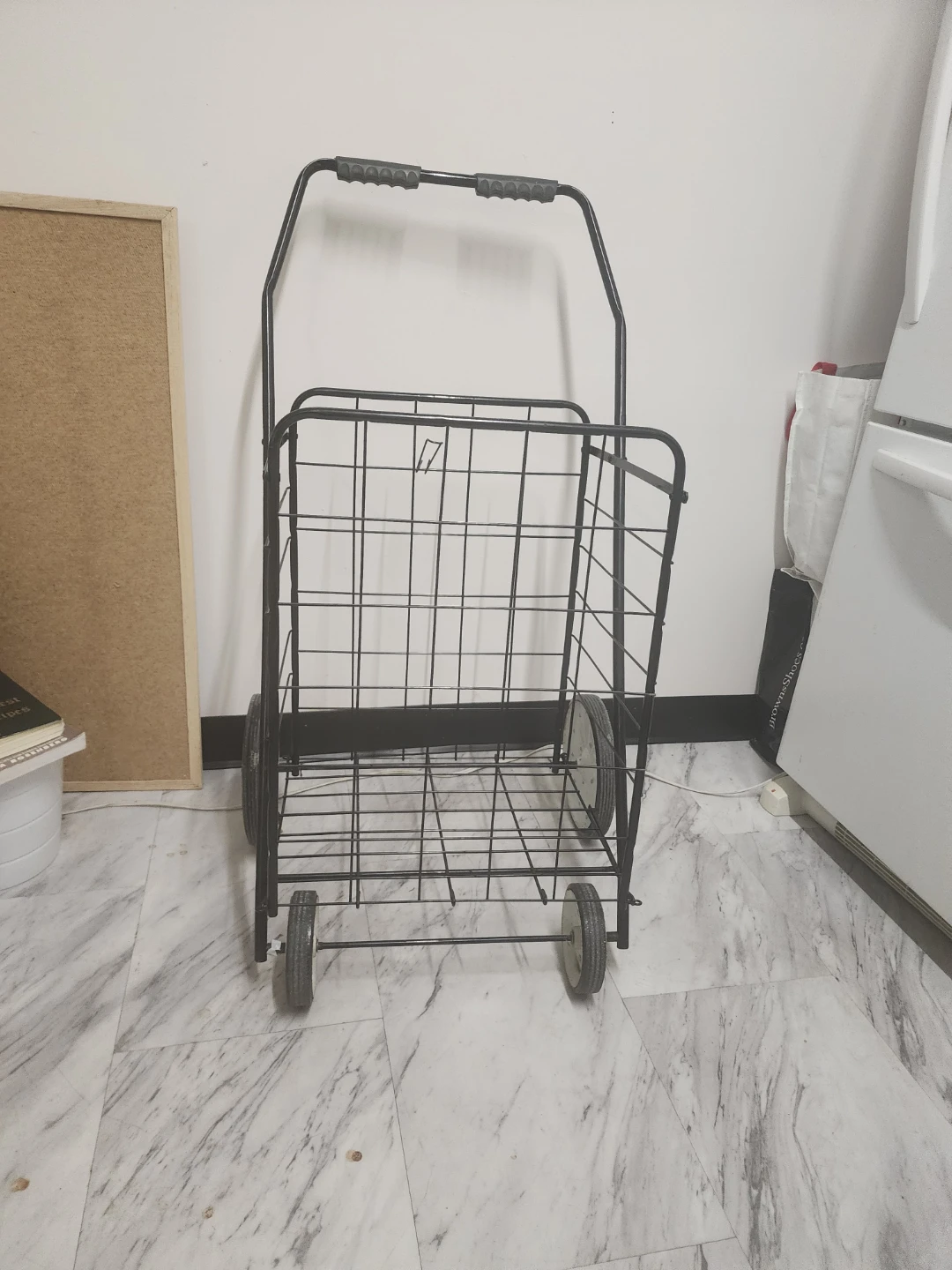 Selling a folding shopping cart. It's in good condition and ready to use for groceries or other items. Easy to store when not in use