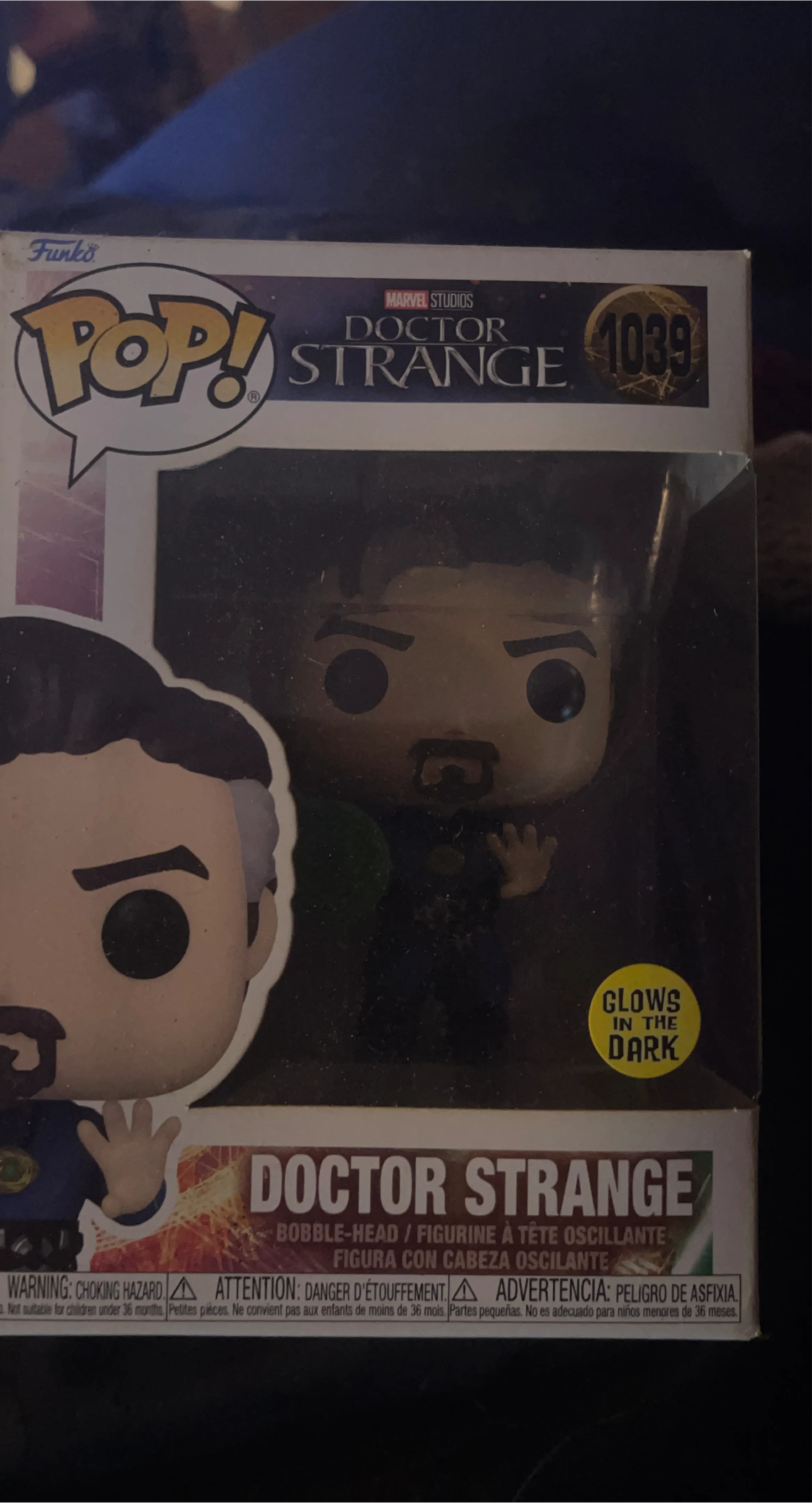 Selling a Funko Pop! of Doctor Strange from Marvel Studios. This is number 1039 in the series and it even glows in the dark! It's a bobble-head figurine.