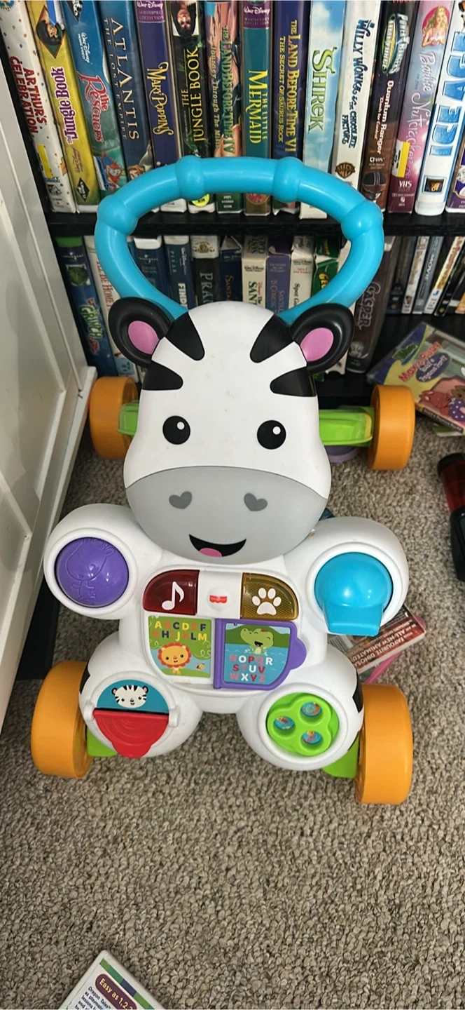 This is a Fisher-Price Learn with Me Zebra Walker! It's in great condition and ready for a new little one to enjoy. It features fun activities and sounds to help your child learn and develop motor skills