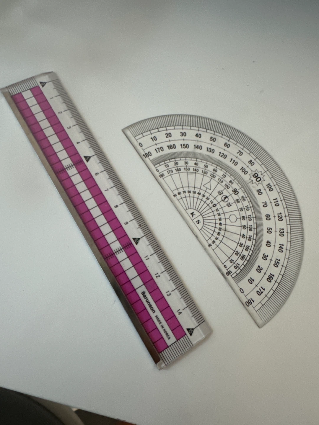 Selling a ruler and protractor set by Barunson. The ruler is marked in centimeters and the protractor is clear for easy measuring. Great for school or office use!