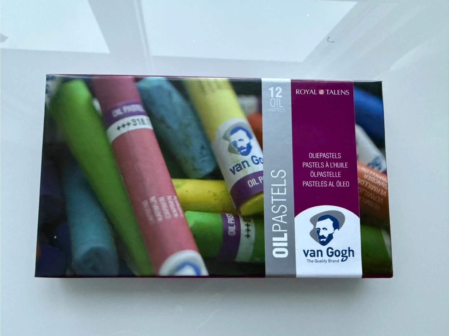 I'm selling a set of Van Gogh oil pastels by Royal Talens! This set contains 12 vibrant colours, perfect for expressive artwork on paper, cardboard, or wood. These oil pastels are known for their striking colour release and remarkable covering power, making them ideal for both beginners and experienced artists