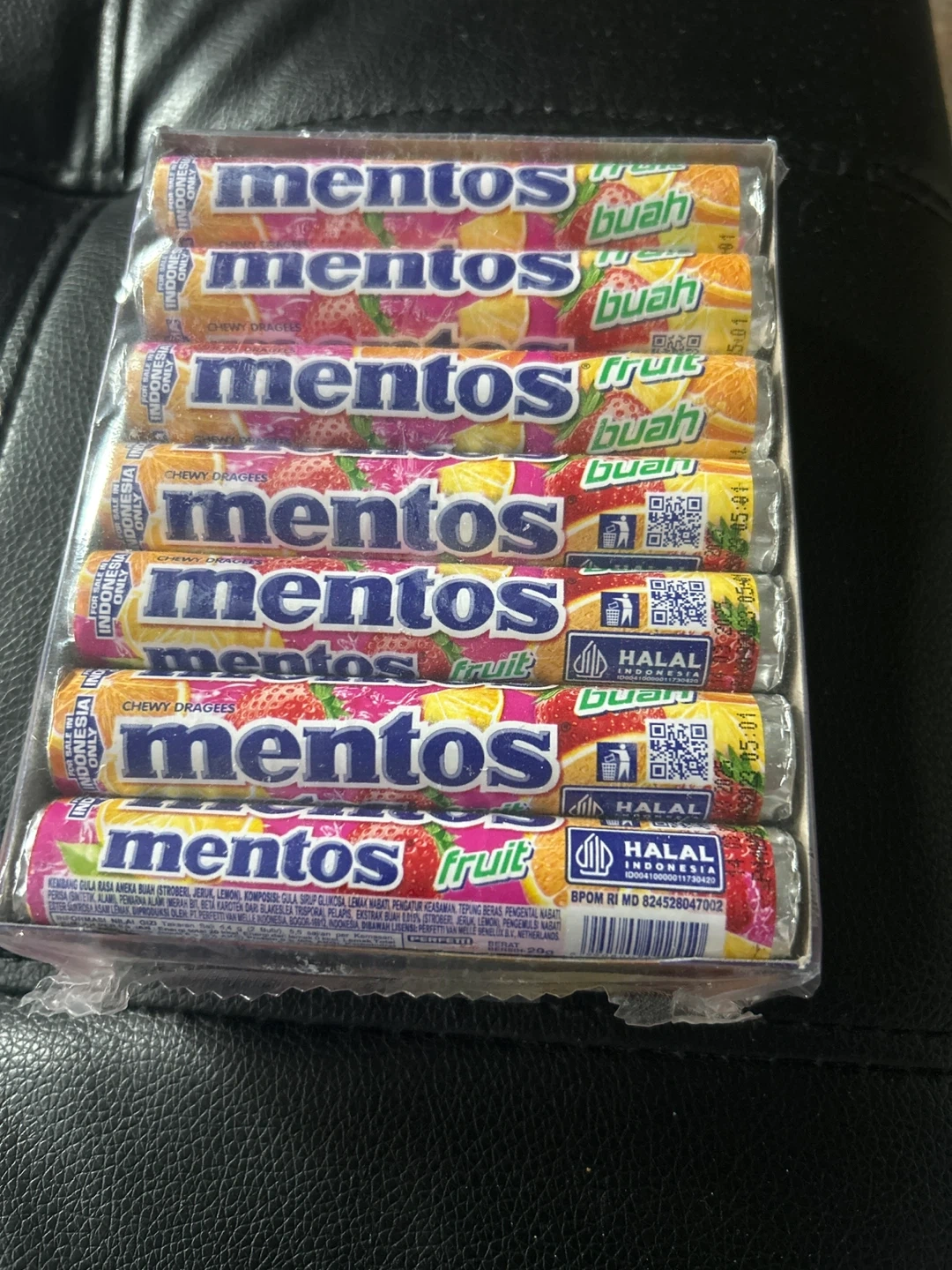 Selling a pack of Mentos Rasa Buah chewy dragees! These fruit-flavored candies are a tasty treat to have on hand. Enjoy the variety of fruity flavors in each roll