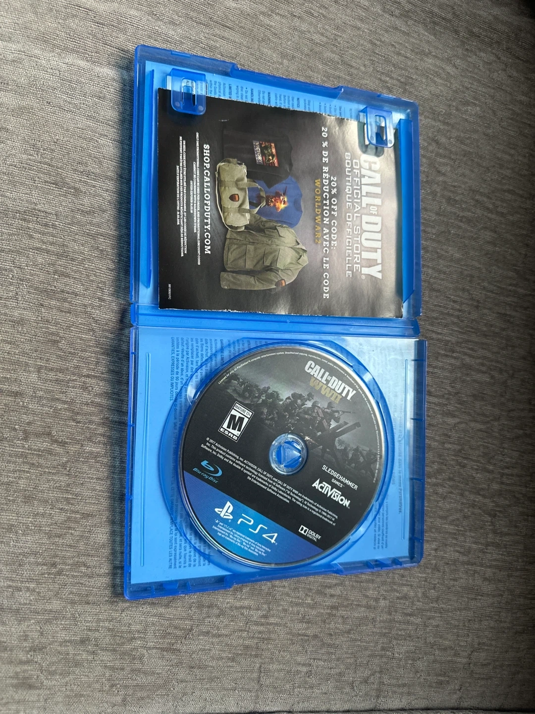 Selling Call of Duty WWII for ps4. Comes with the disk and it is awesome condition it has been used a couple times but then got boring so I am selling it now who ever wants it just dm me first come first serve. Has a couple scratches but does not affect the game.