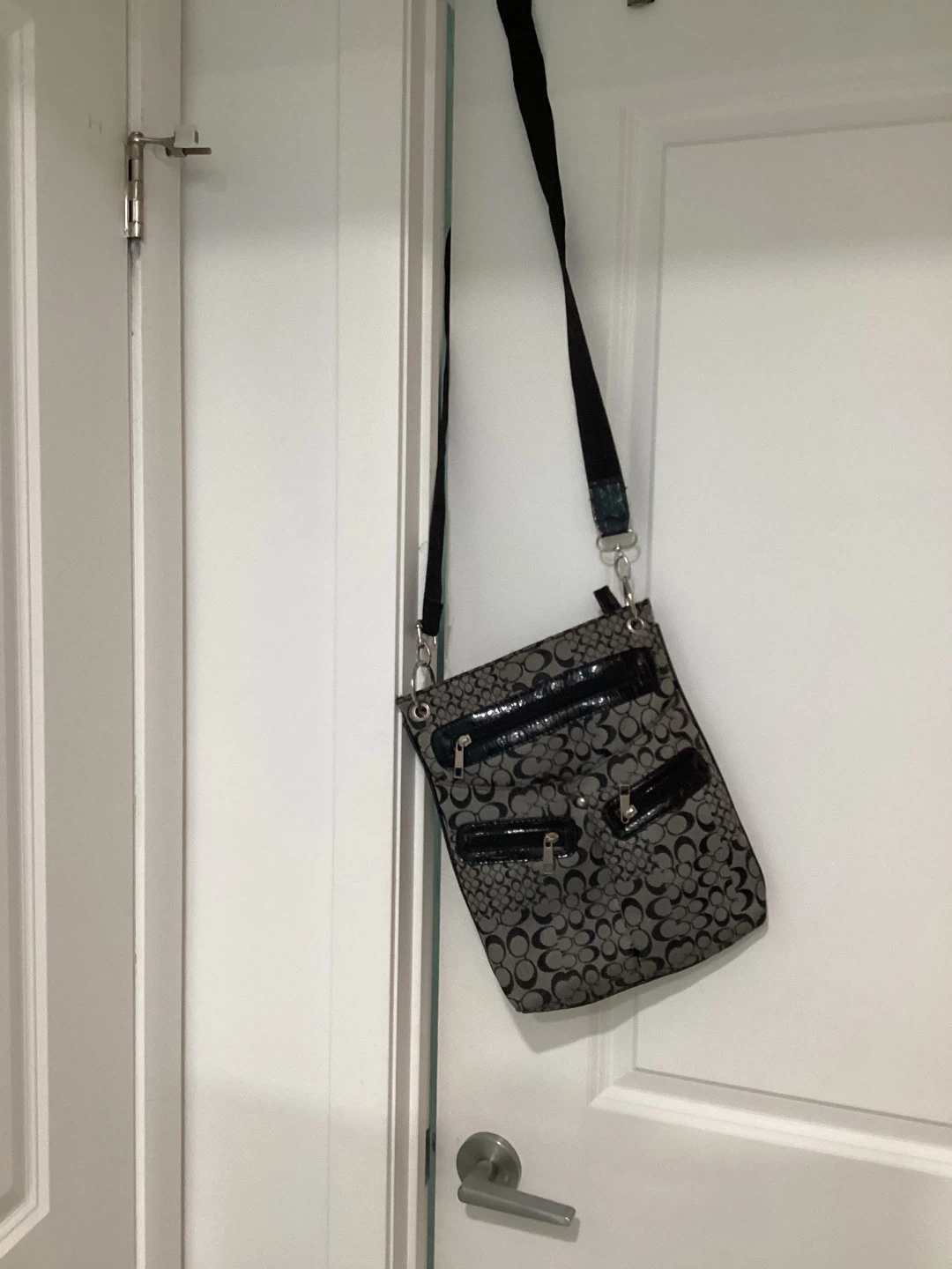 Selling a Coach likecrossbody bag! It's in great condition and features a stylish pattern with black accents. Perfect for everyday use and carrying your essentials