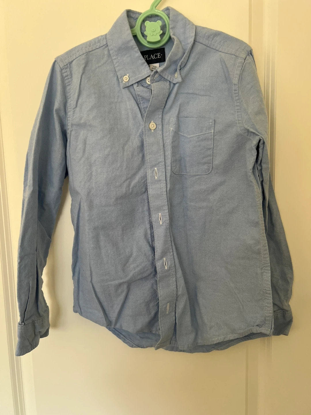 A gently used light blue button-down shirt from The Children's Place! Perfect for a casual or slightly dressy look for your little one. It's in great condition and ready for a new adventure