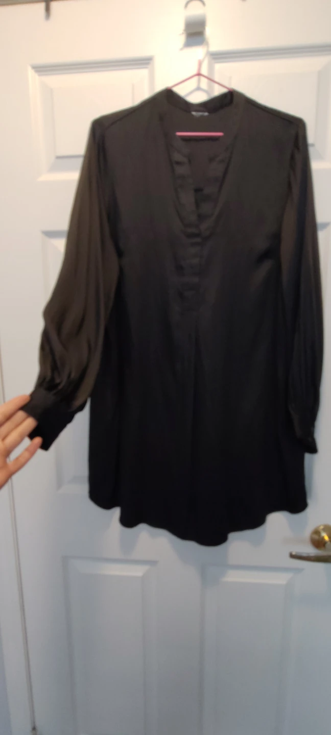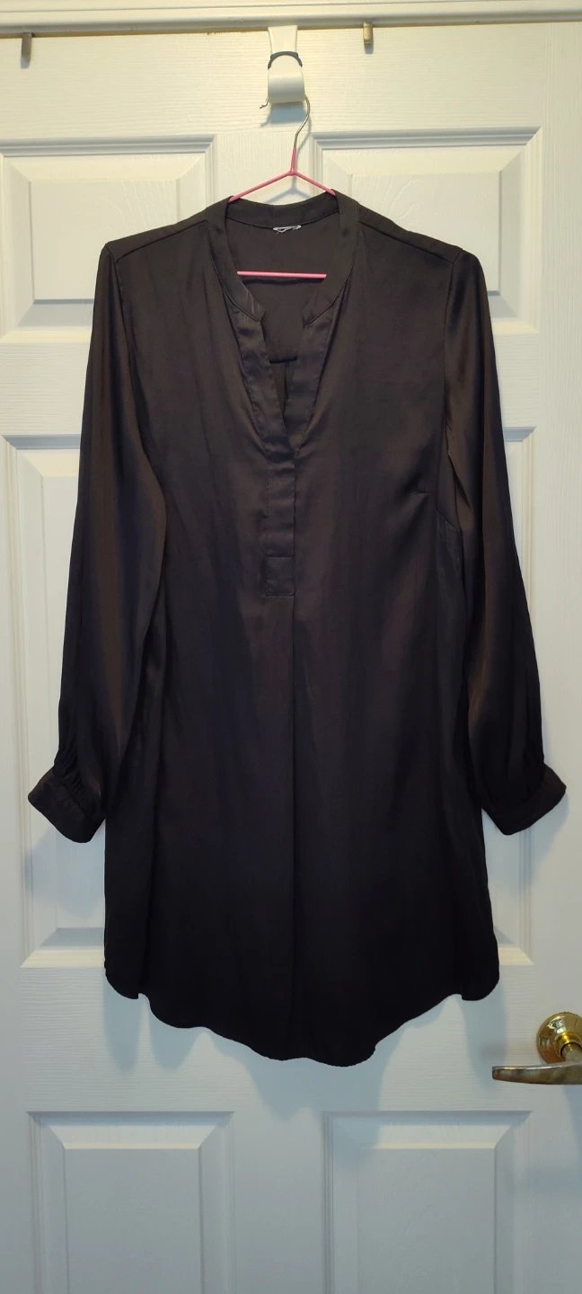 Here's a stylish black long sleeve blouse/dress! It's in great condition and ready to wear. Perfect for dressing up or down, this blouse is a versatile addition to any wardrobe.
