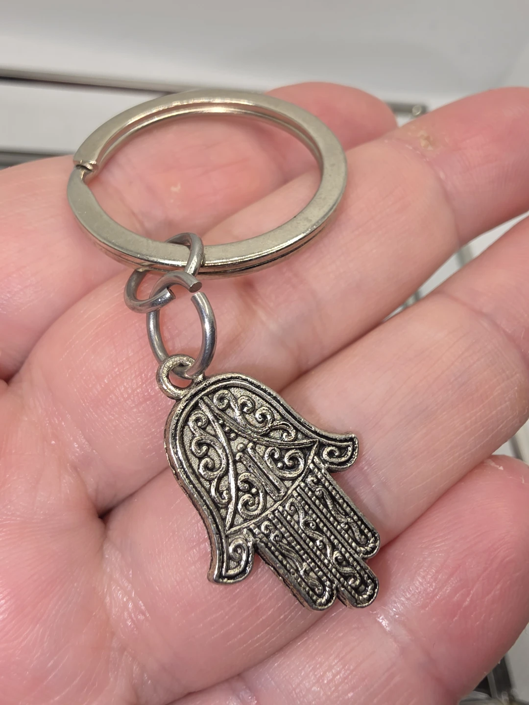 1 / 11 / 1Buy & SellHamsa Hand KeychainHamsa Hand Keychain$5Selling a Hamsa hand keychain. It's in great condition and has a nice silver colour. It's perfect for adding a bit of charm to your keys or bagWHERE TO MEET5 min walk from High Park stationView MapSELLERverifiedMagdalenaHigh Park N34819 reviews0 chats·0 favorites·5 viewsSEND CHAT TO SELLERHi Magdalena! I’m interested in your listing.Hi Magdalena! I’m interested in your listing.Get the Karrot app to chatSign In to chat