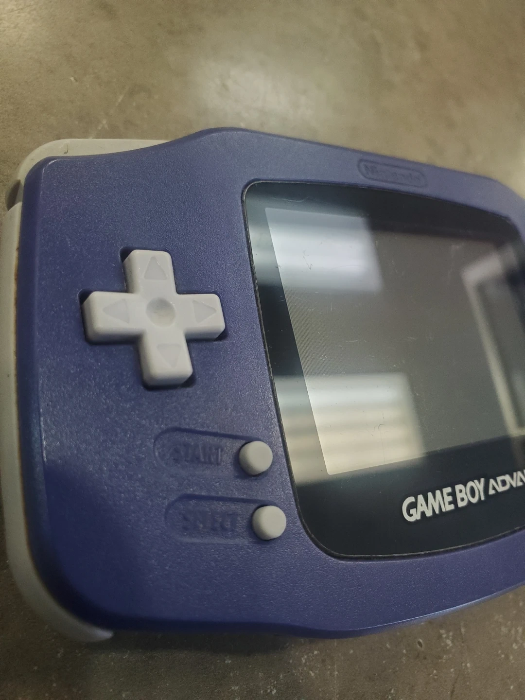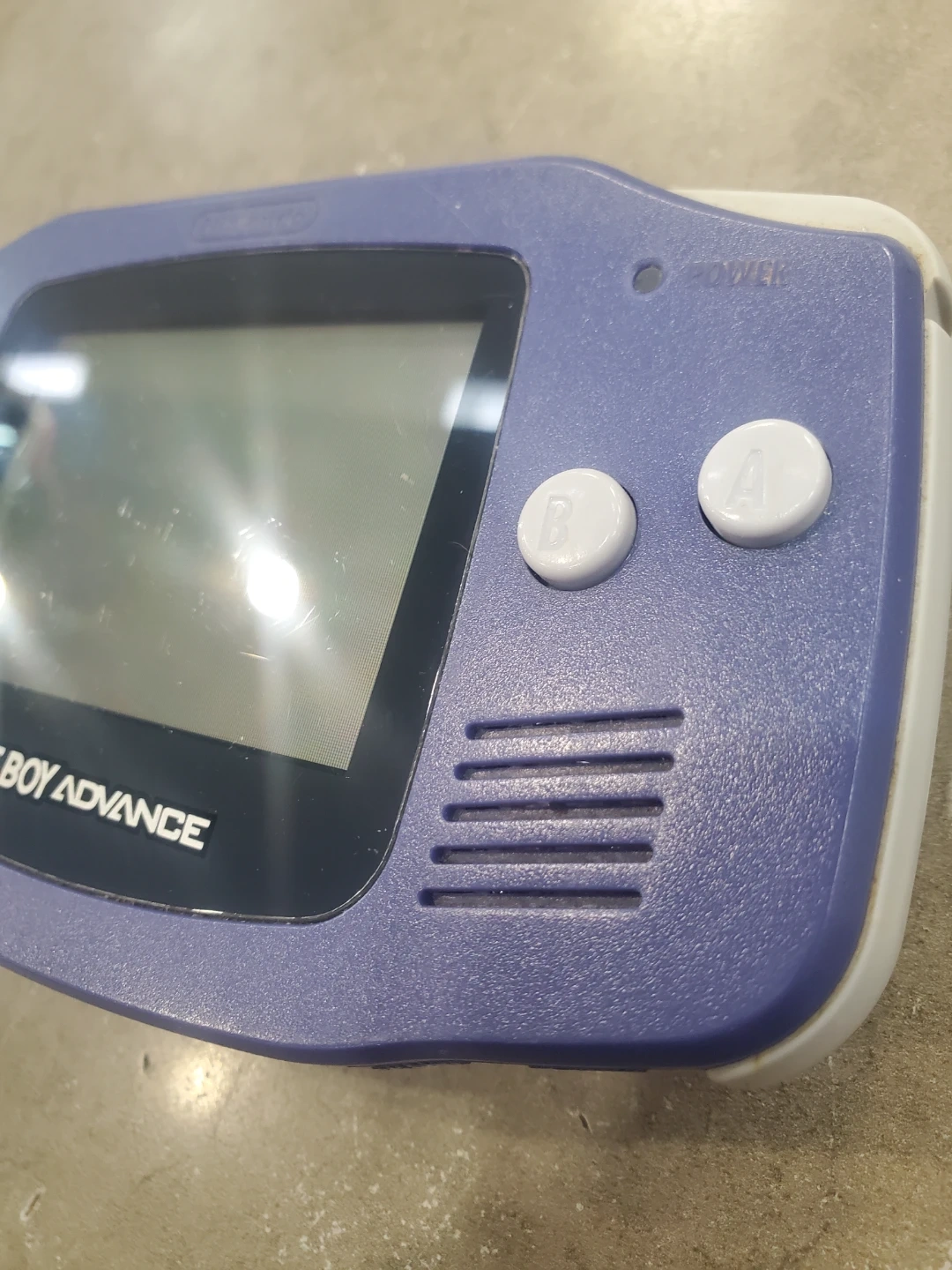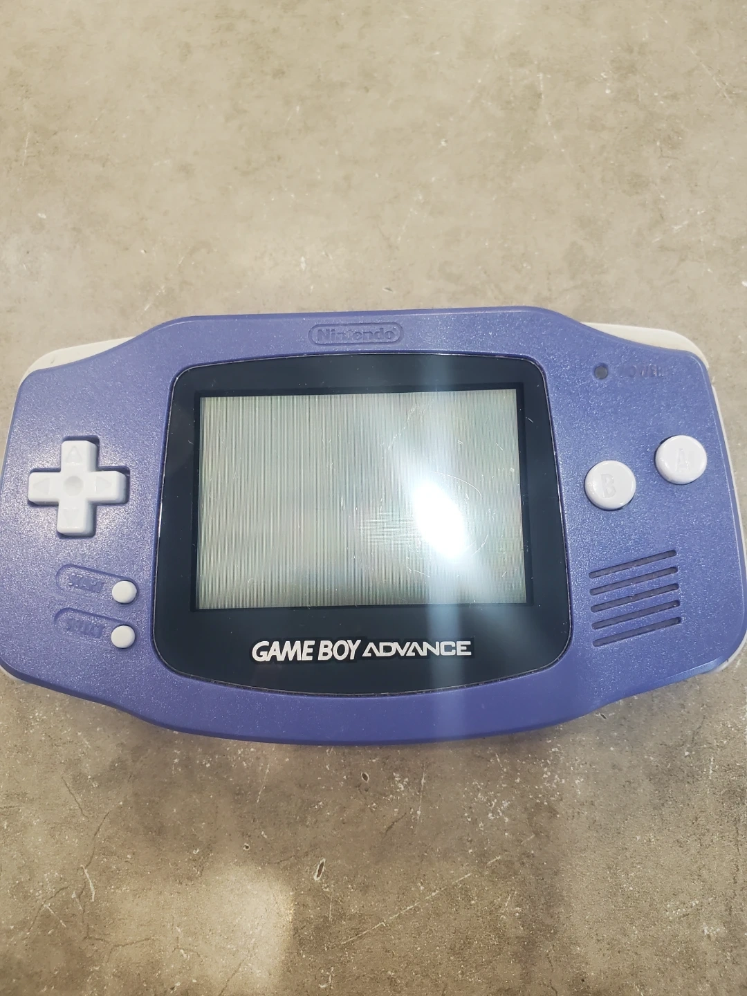 Selling a used purple Nintendo Game Boy Advance. It has some signs of wear, but it's still fully functional and ready for some retro gaming fun!