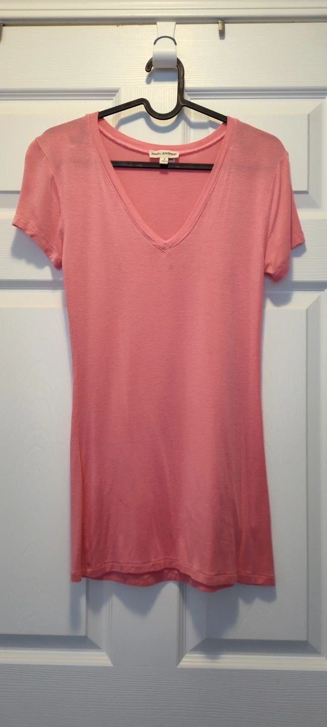 Here's a pink V-neck t-shirt! It's a lovely colour and ready for a new wardrobe.