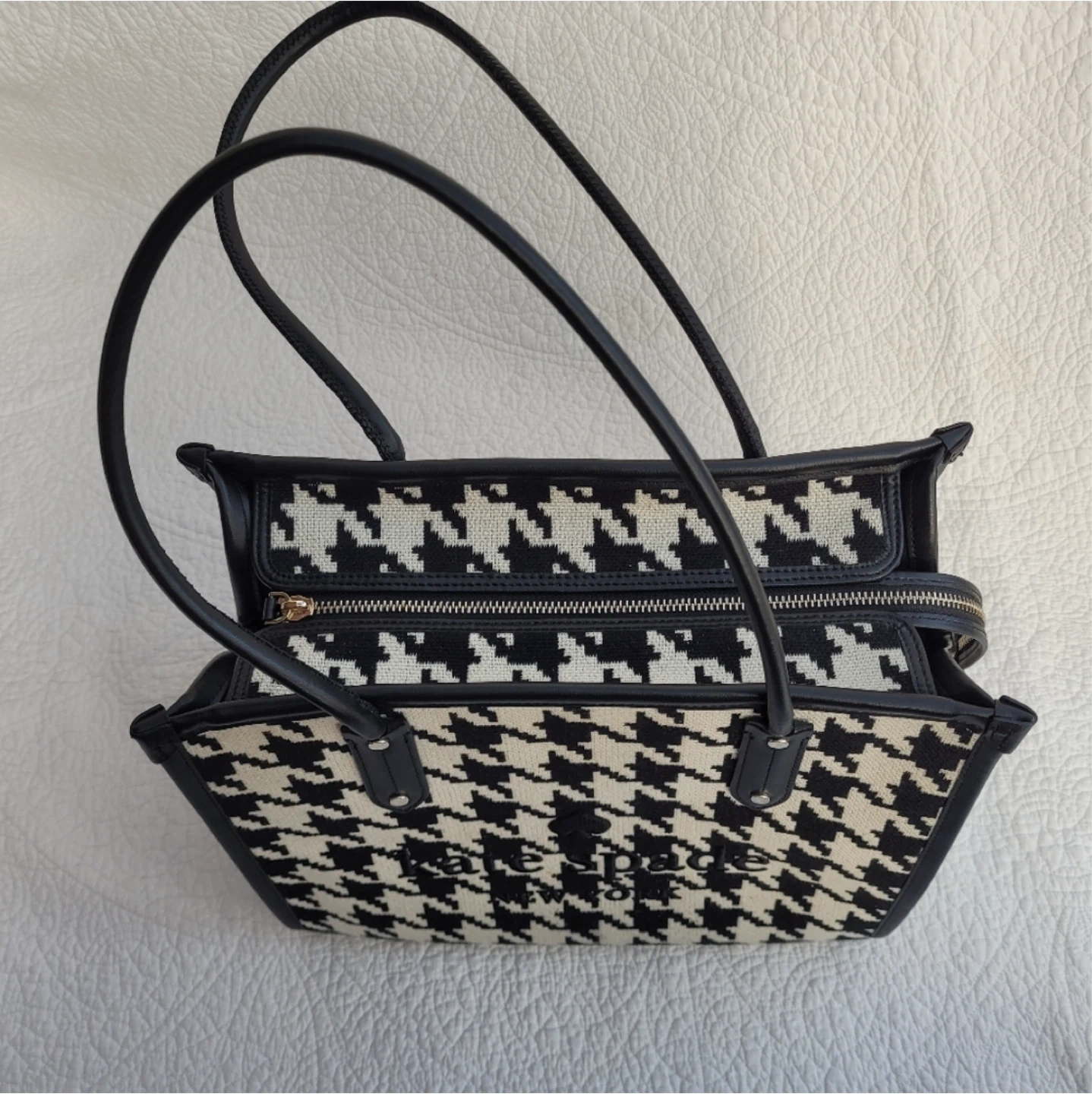 RARE Kate Spade Large Ella Houndstooth Jacquard Tweed Tote Bag