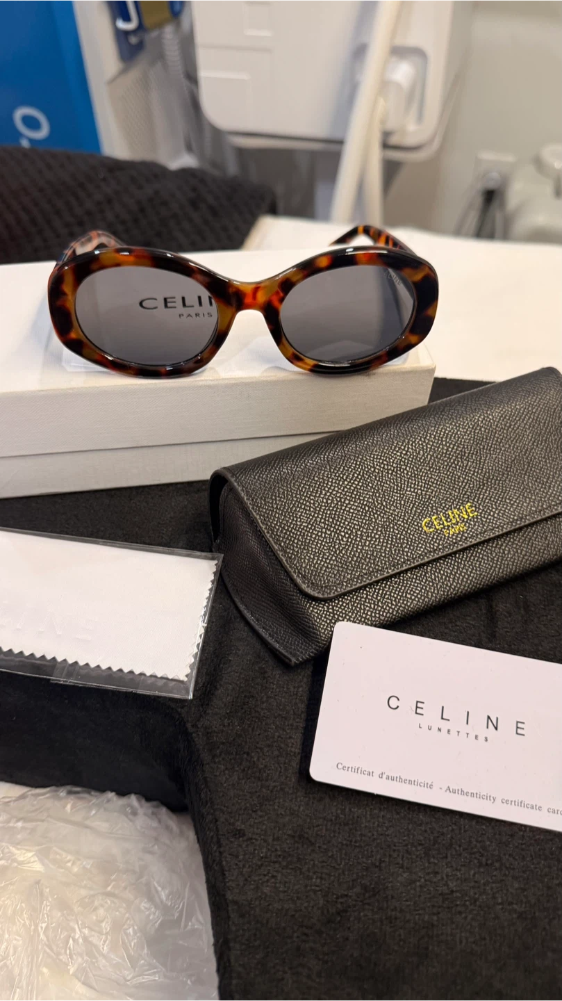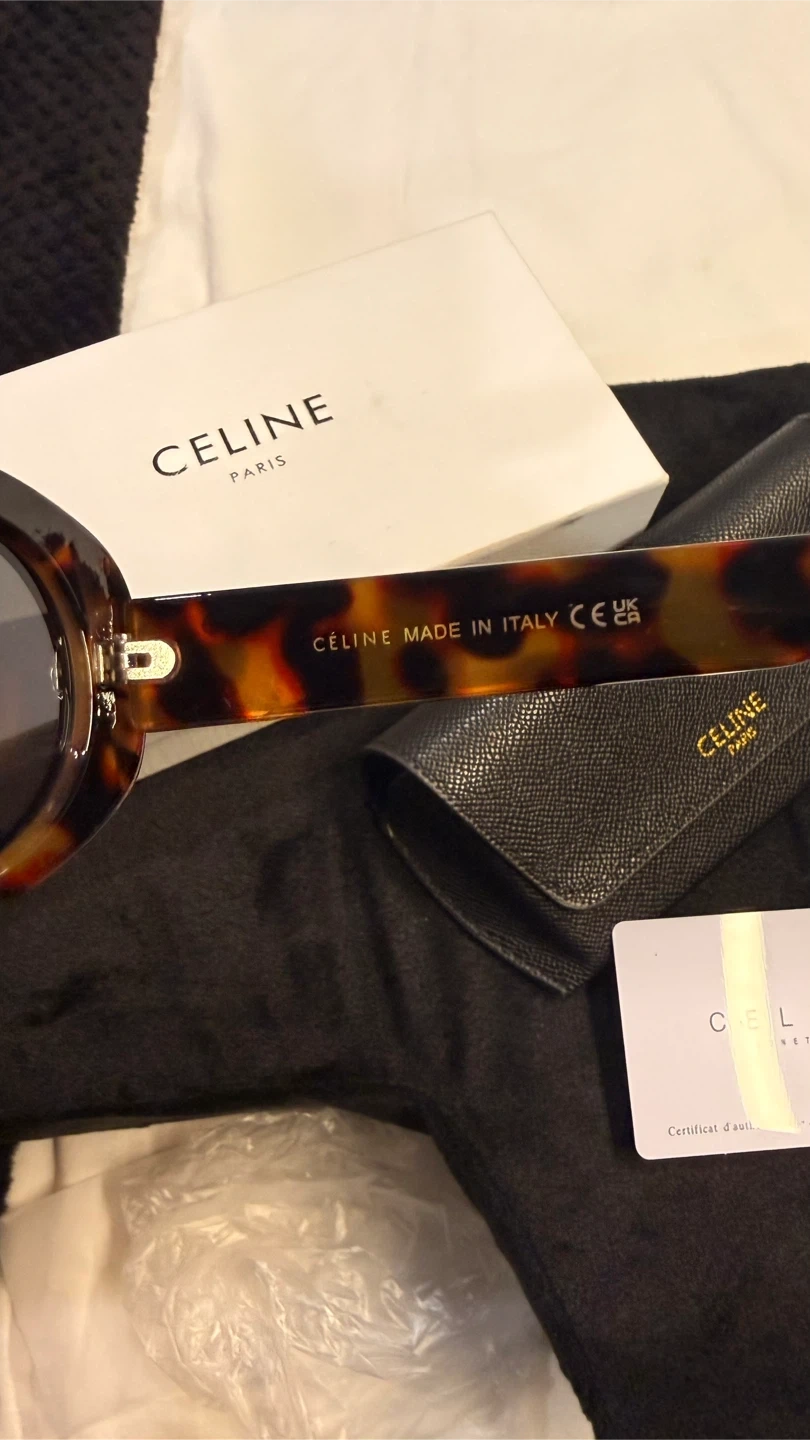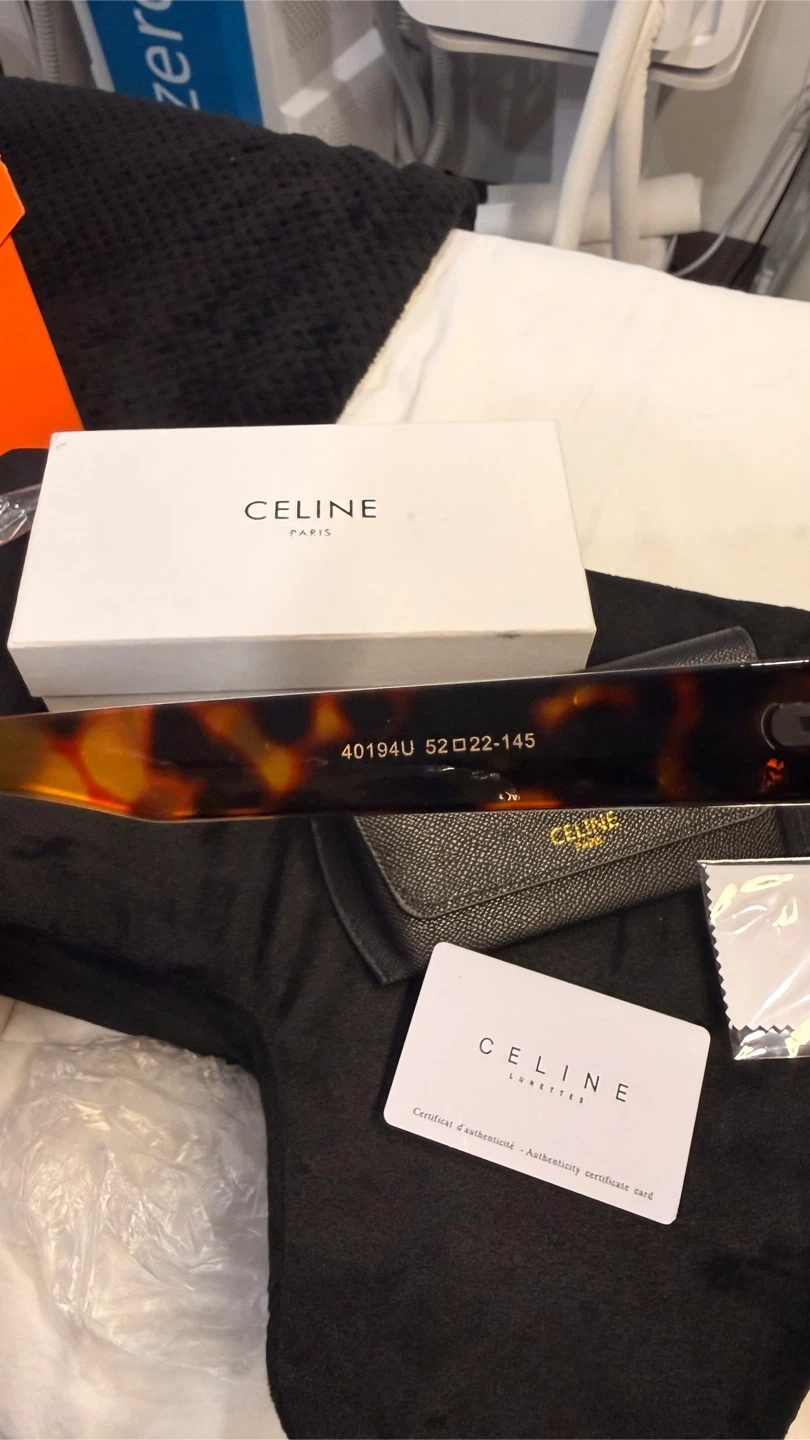 Selling a pair of Celine sunglasses in tortoise. These stylish sunglasses are in great condition and come with the original box, case, and authenticity card. The model number is 40194U 52□22-145. Made in Italy.