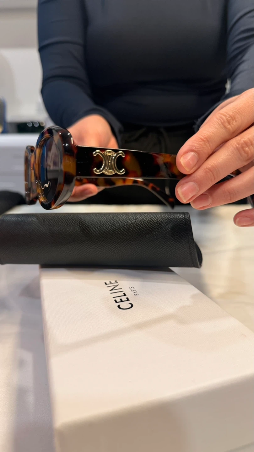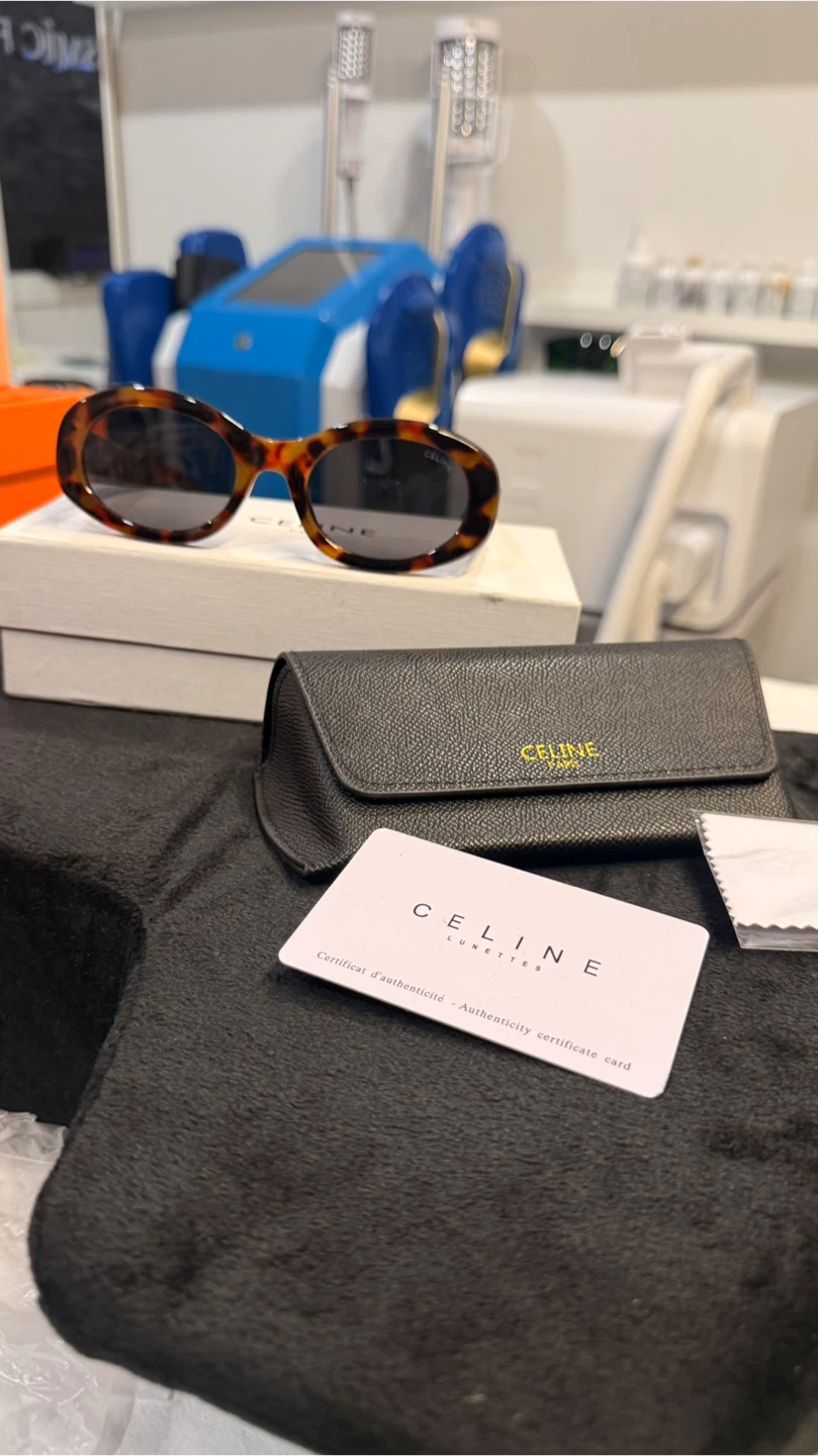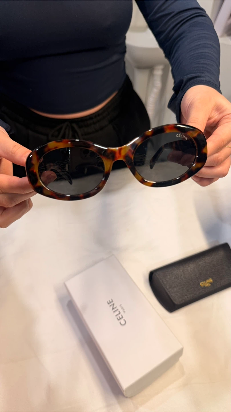 Selling a pair of Celine sunglasses in tortoise. These stylish sunglasses are in great condition and come with the original box, case, and authenticity card. The model number is 40194U 52□22-145. Made in Italy.
