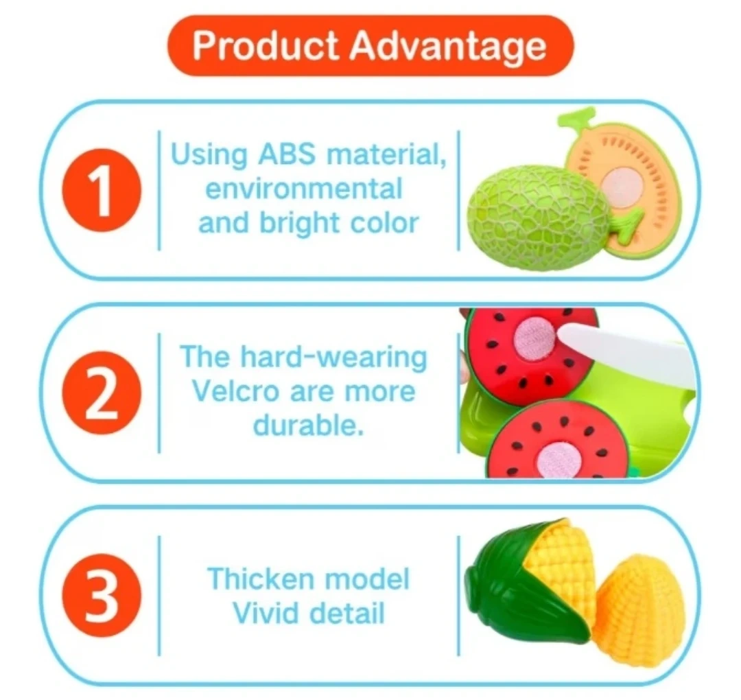 This is a fun cutting pizza fruits and vegetable toy set. It includes 32 pieces and comes with a handbag. It's a great early age educational skills development toy for girls and boys. Parent-children interaction and role play are some of the advantages of the toy set. It's suitable for babies up to 3 years old.