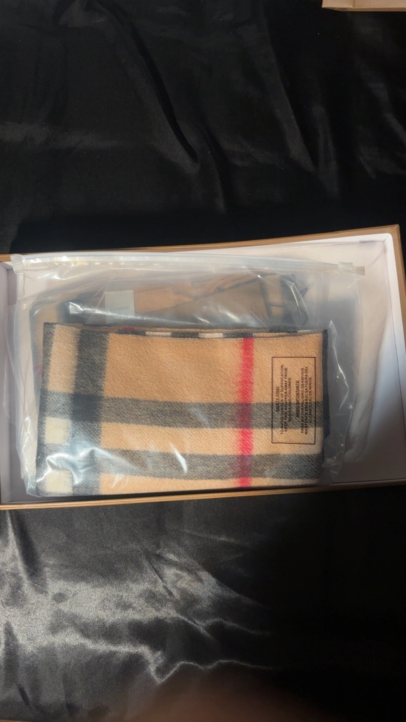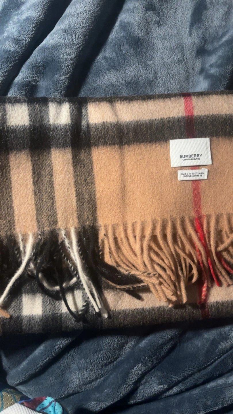 Selling a Burberry scarf in the classic check pattern! It's made of 100% cashmere and comes with the original box and bag. A timeless piece to keep you warm and stylish.