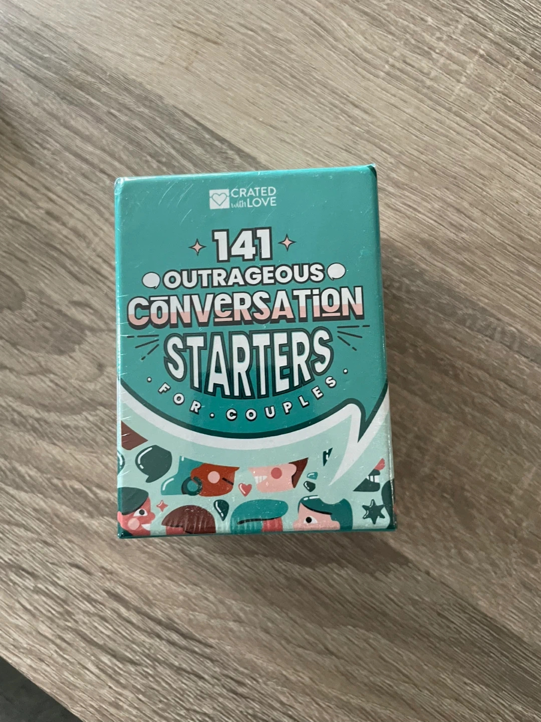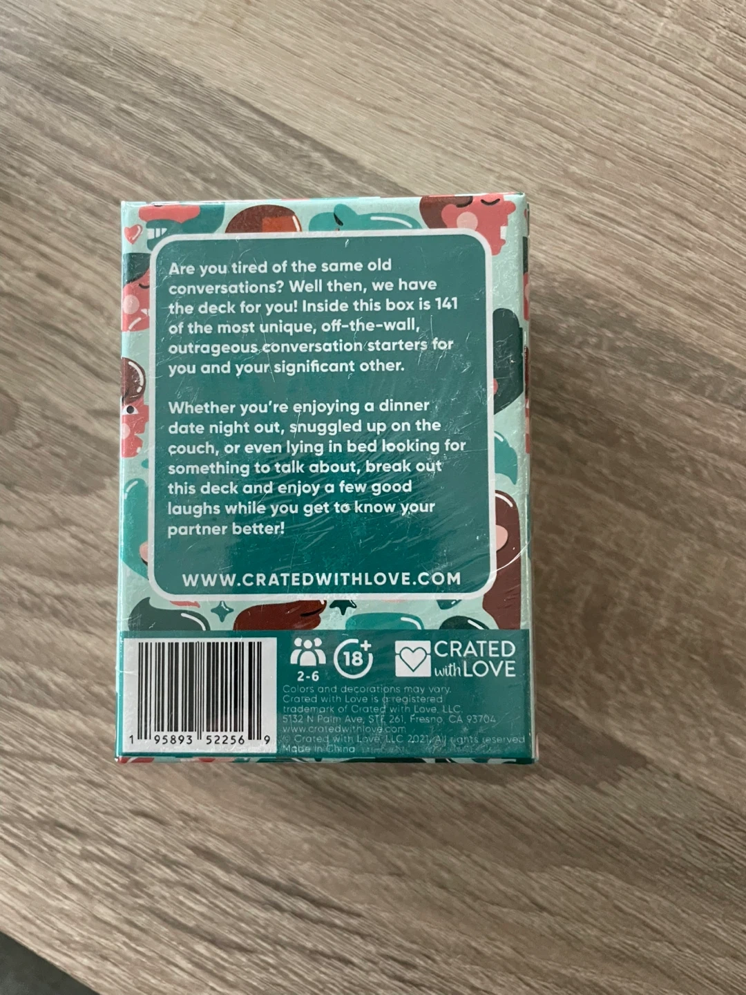 Spice up your conversations with the Crated With Love deck! Inside this box, you'll find 141 unique and outrageous conversation starters perfect for date nights or cozy evenings at home. It's designed for 2-6 players and recommended for ages 18+