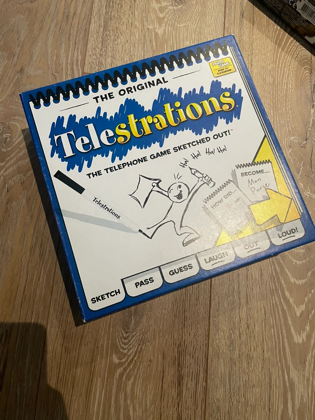 Selling the original Telestrations party game! It's a fun telephone game sketched out that's great for ages 12+ and 4-6 players. Get ready to sketch, pass, guess, laugh out loud!