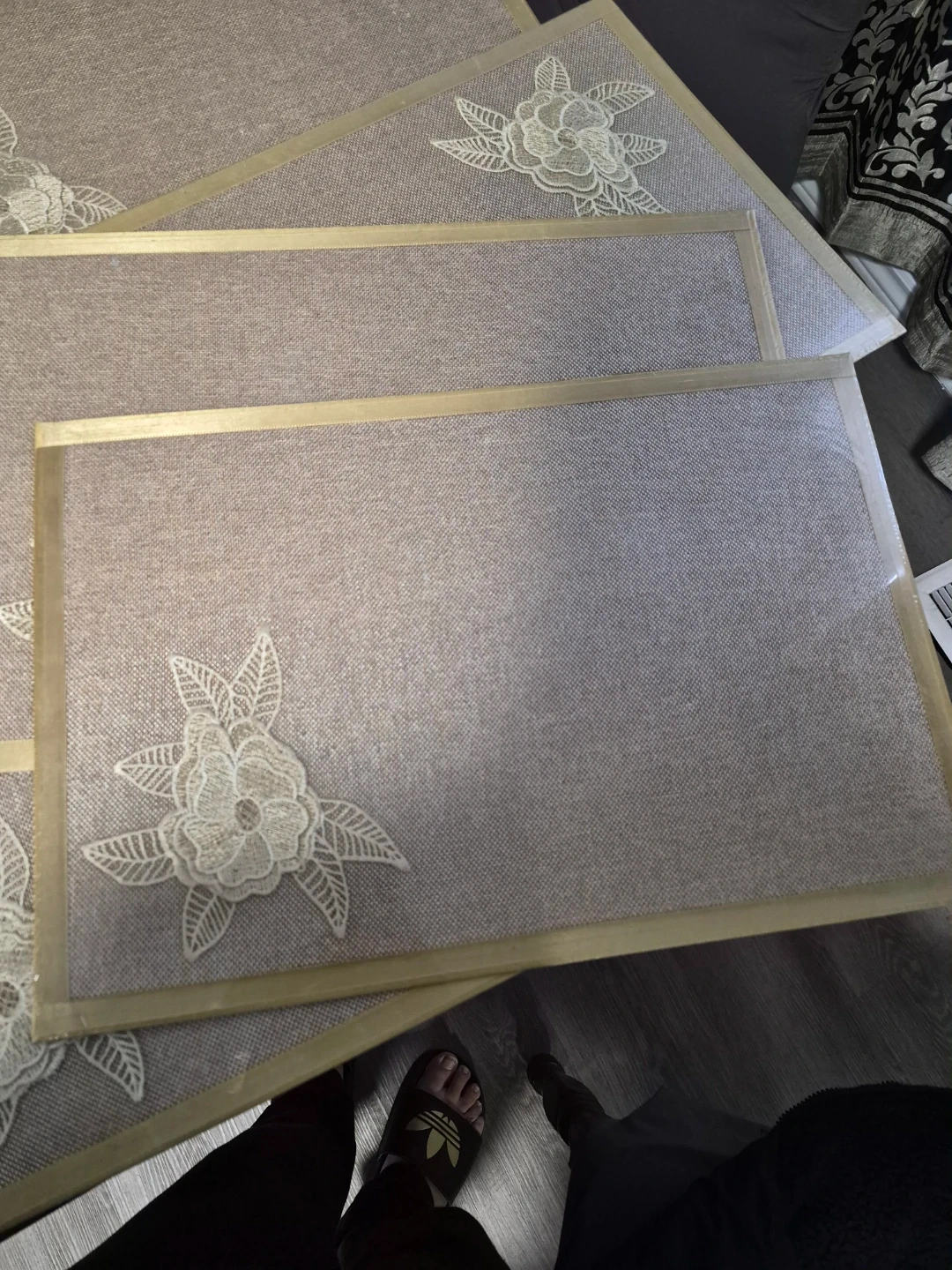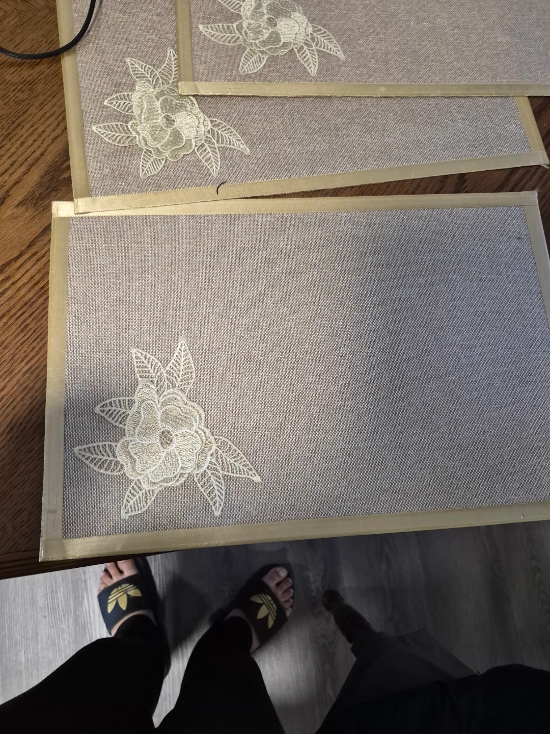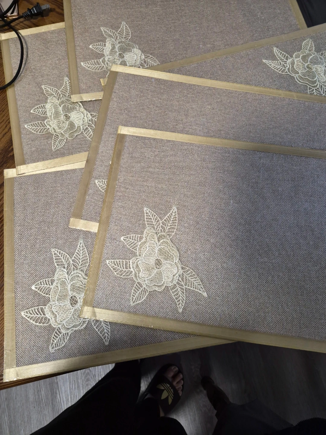 Selling a set of 6 placemats with a lovely floral embroidery design. They're in great condition and would add a touch of elegance to any dining table!