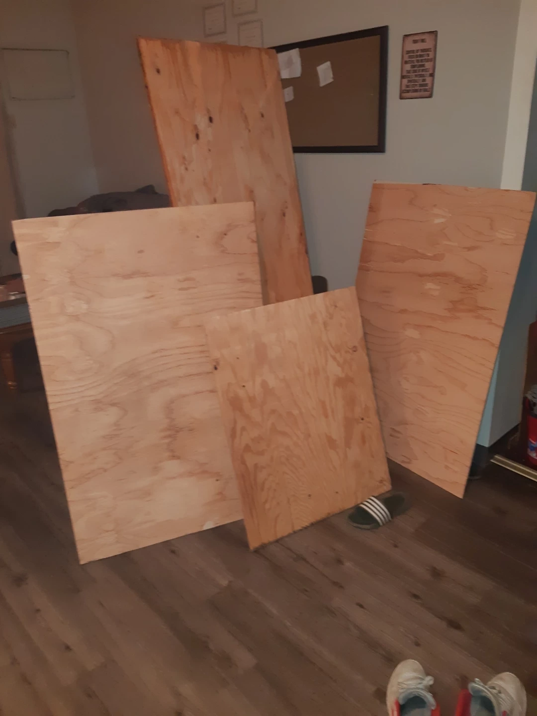 Selling a collection of plywood sheets in various sizes. Perfect for DIY projects, crafts, or repairs. They're in good condition and ready for your next project! They are various sizes but in new condition