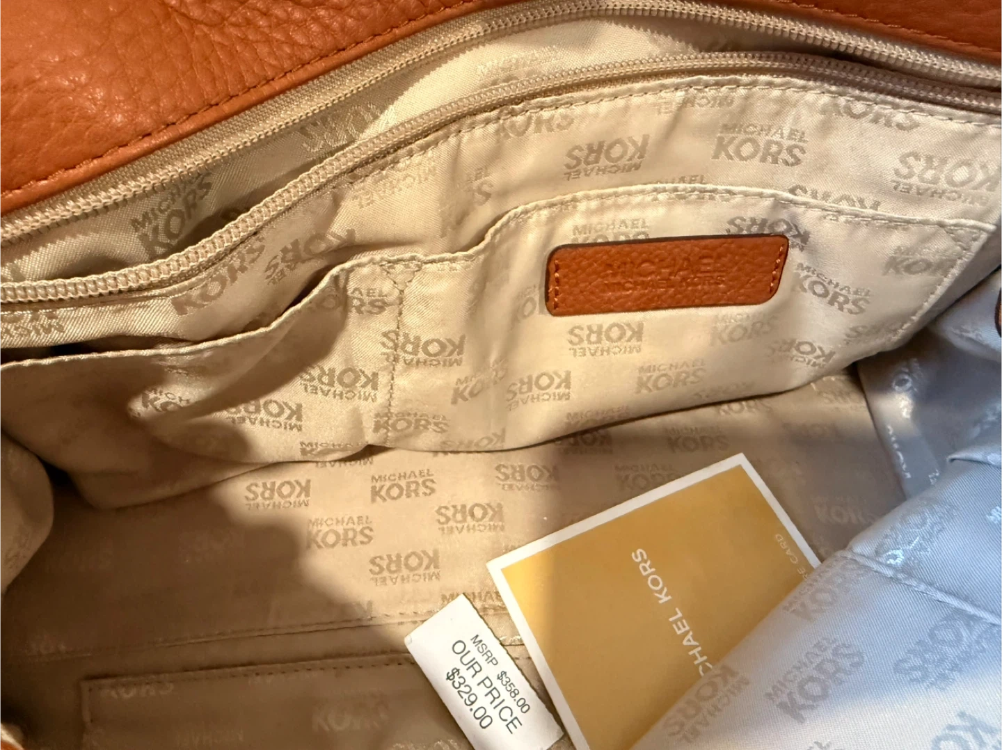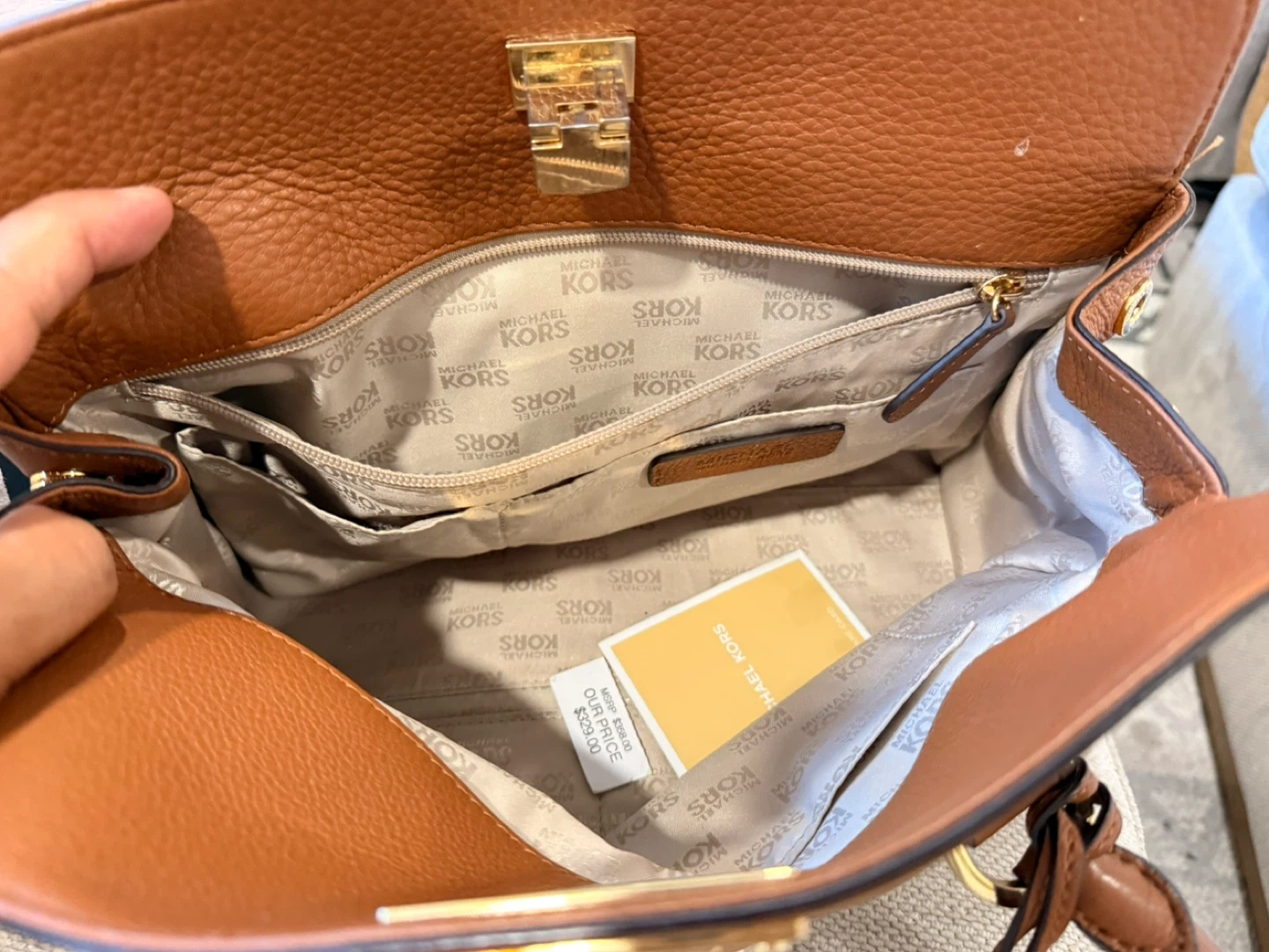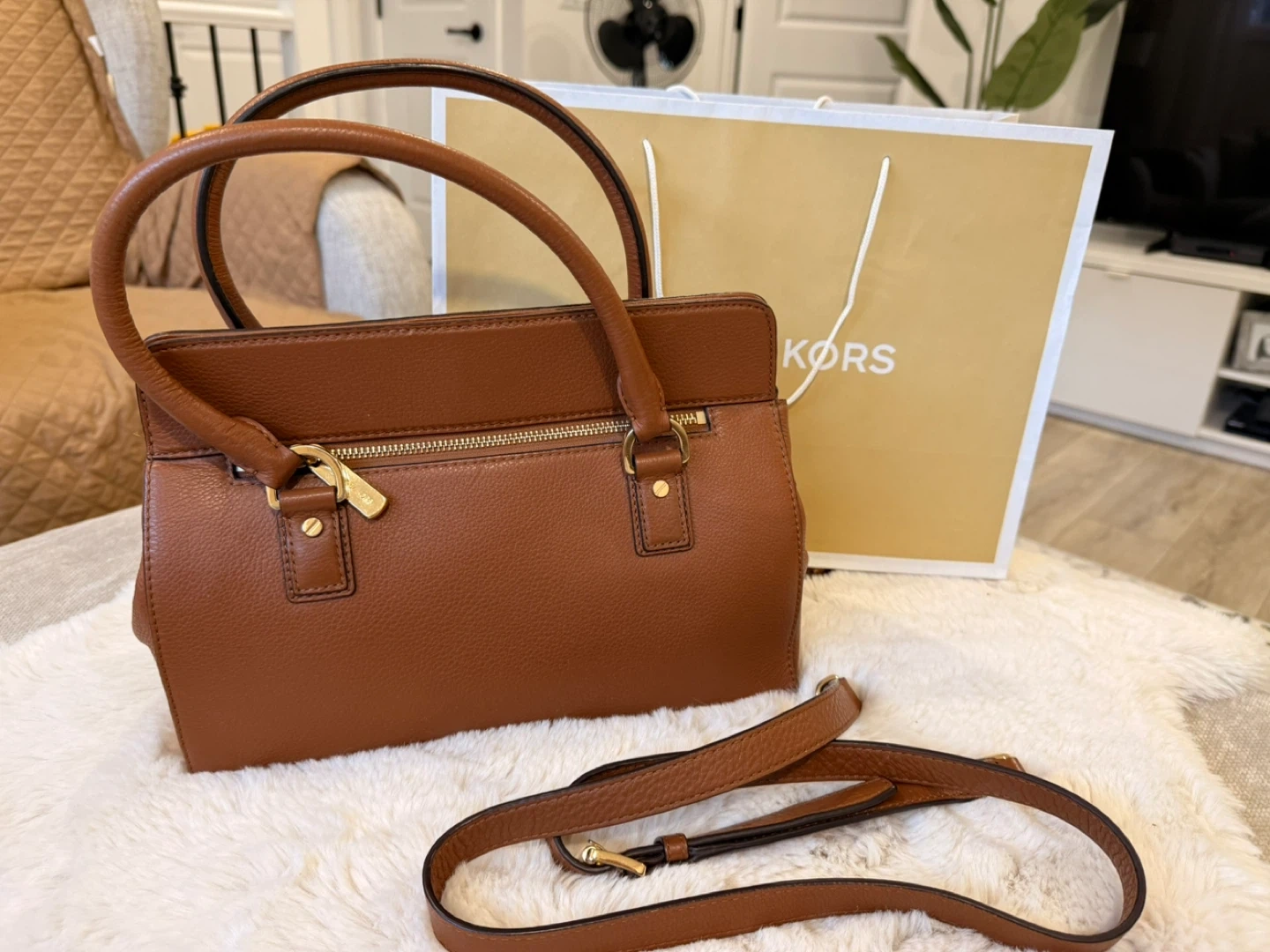 A beautiful brown Michael Kors satchel bag! It's in great shape and ready for a new owner. The bag features a gold-tone logo and hardware. Originally bought for $329!
