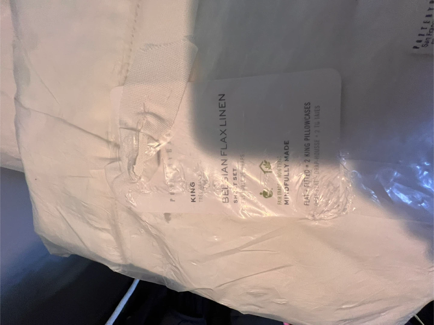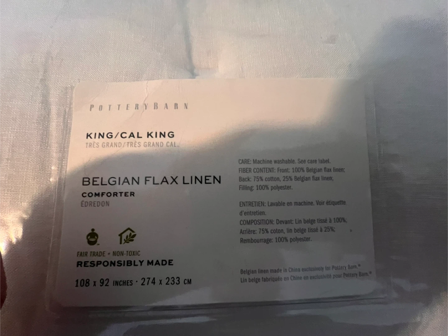 Selling a brand new Pottery Barn King/Cal King Belgian Flax Linen comforter set! It's still in the original packaging.