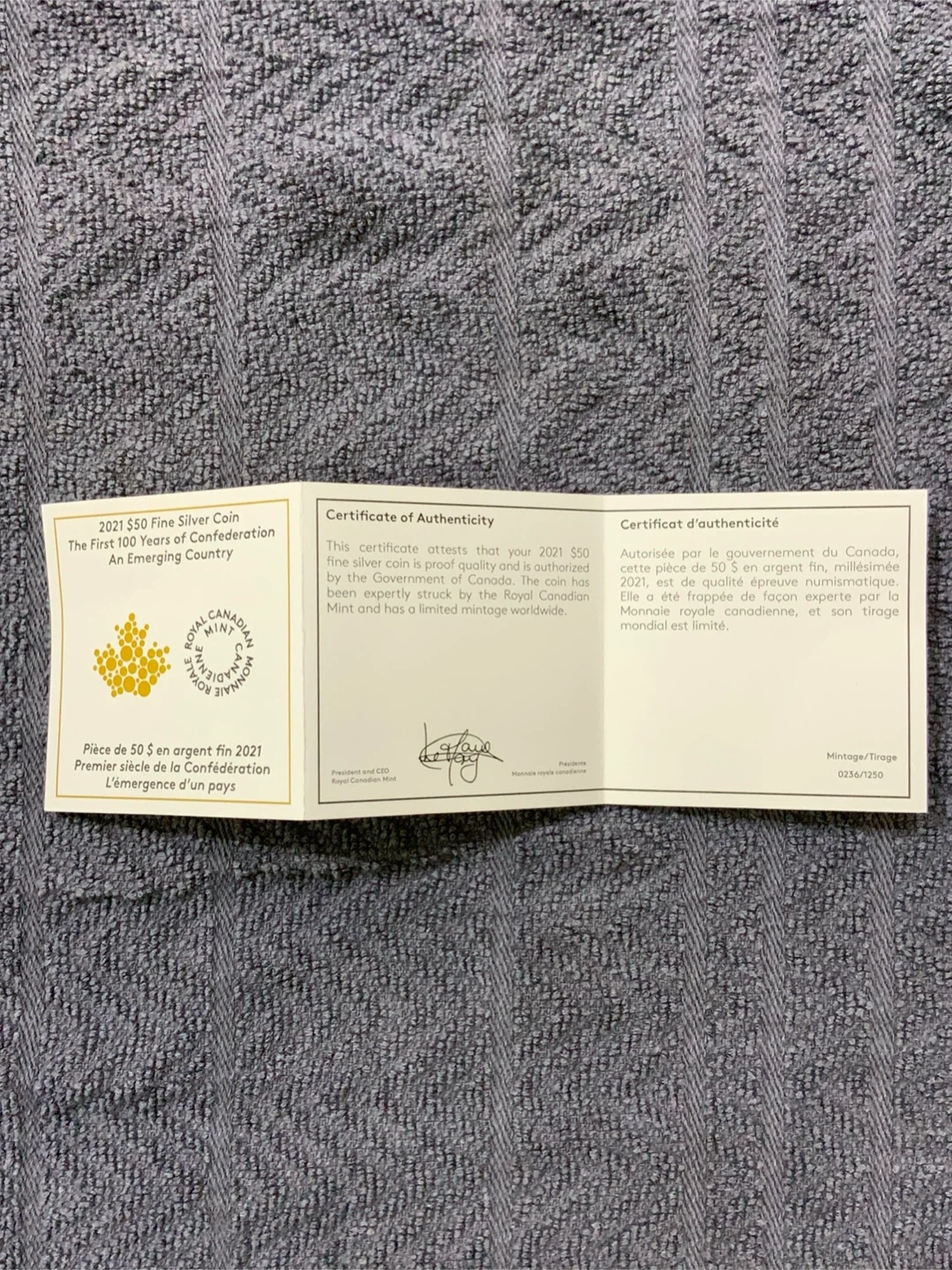 Selling a 2021 $50 Fine Silver Coin commemorating the First 100 Years of Confederation