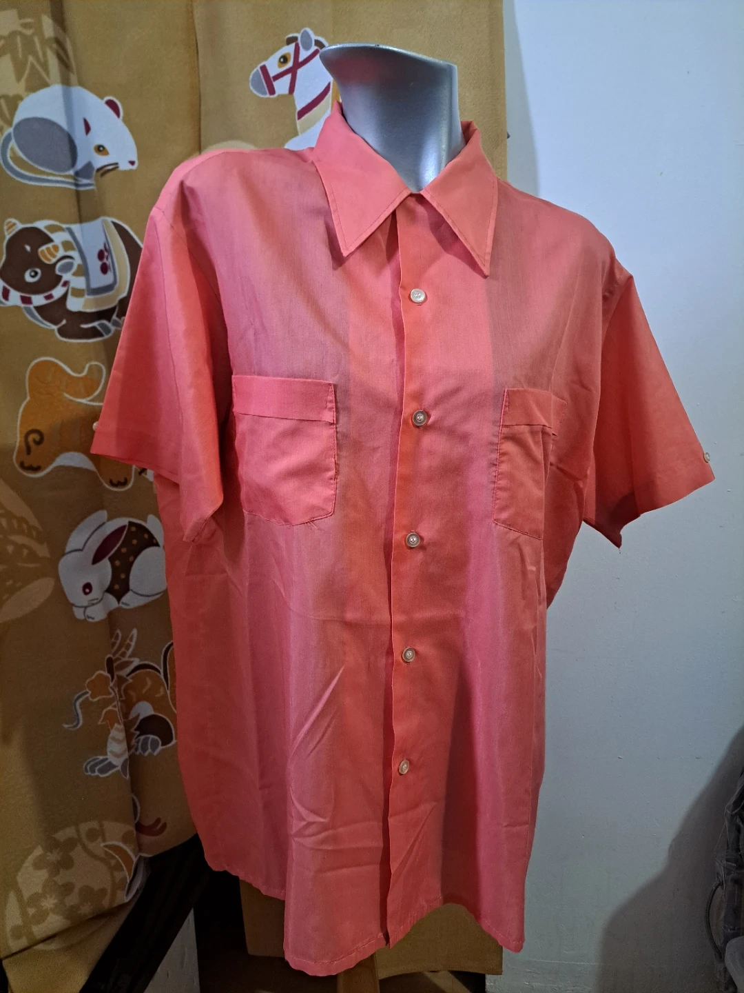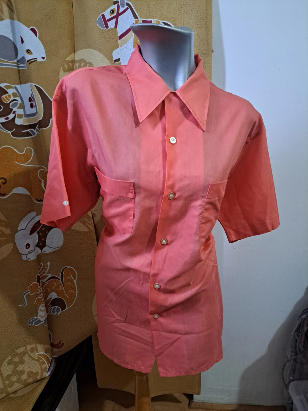 Oversized cute button up t shirt. I'm typically a size medium, and this is a good overrides sorry for me. In good condition.