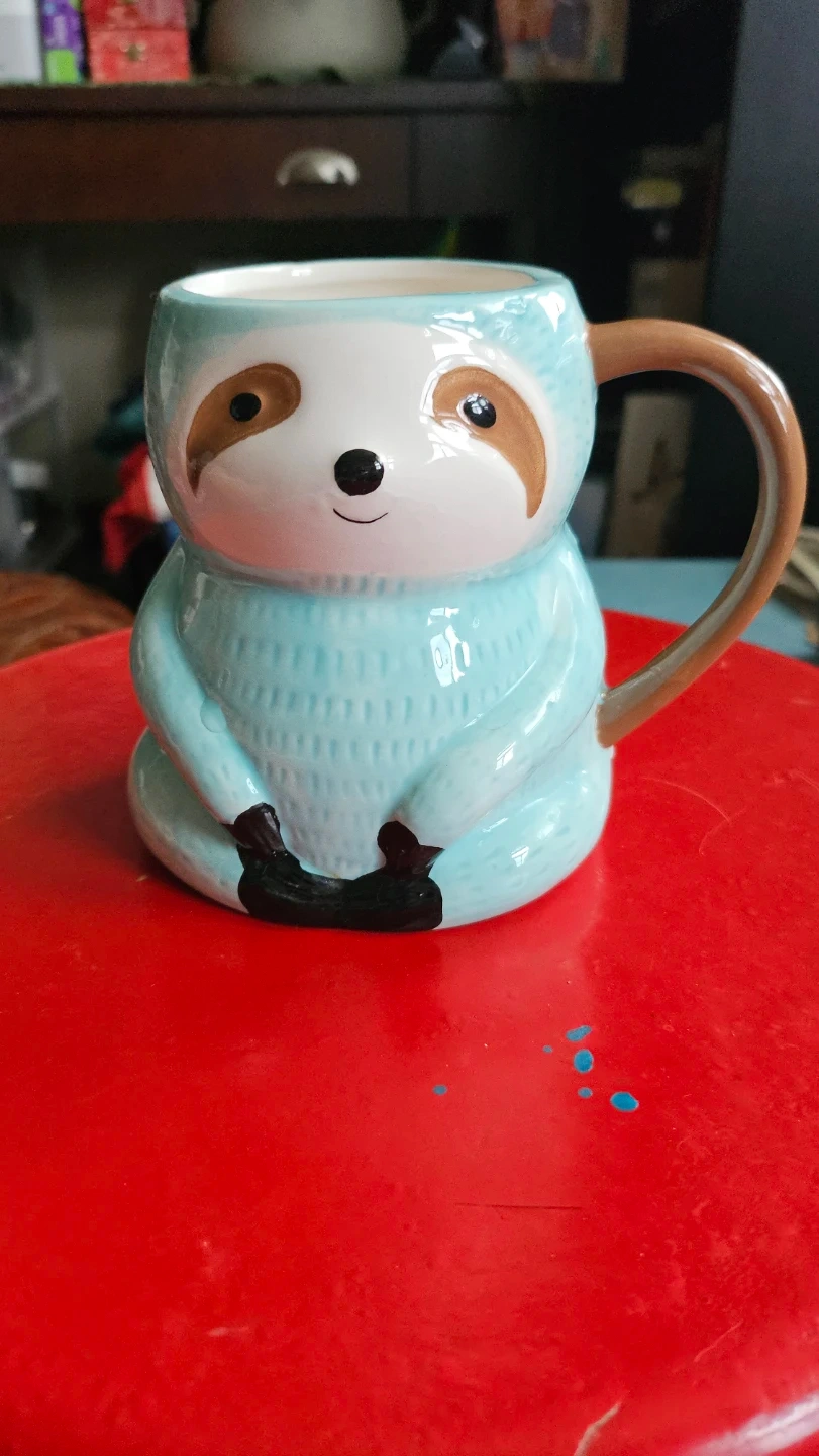 MAKE OFFER!! Super cute sloth mug! It's a light blue ceramic with a brown handle. Perfect for coffee or tea. Holds 2 cups. New.