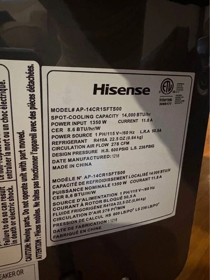 Portable Air Conditioner – 14,000 BTU (Hisense)