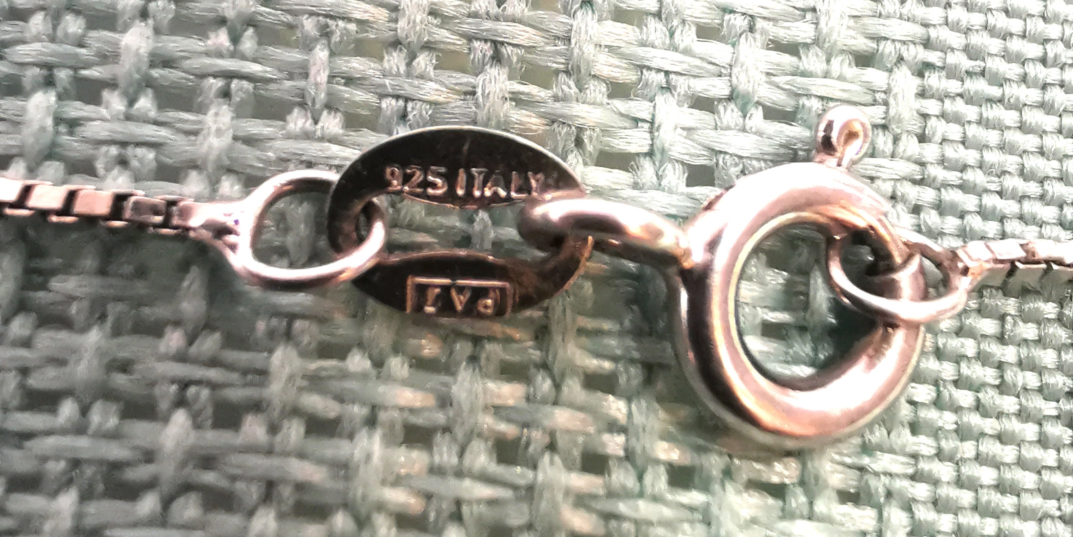 Italian 925 Sterling Silver Box Chain Necklace 18" 1990s Pendant