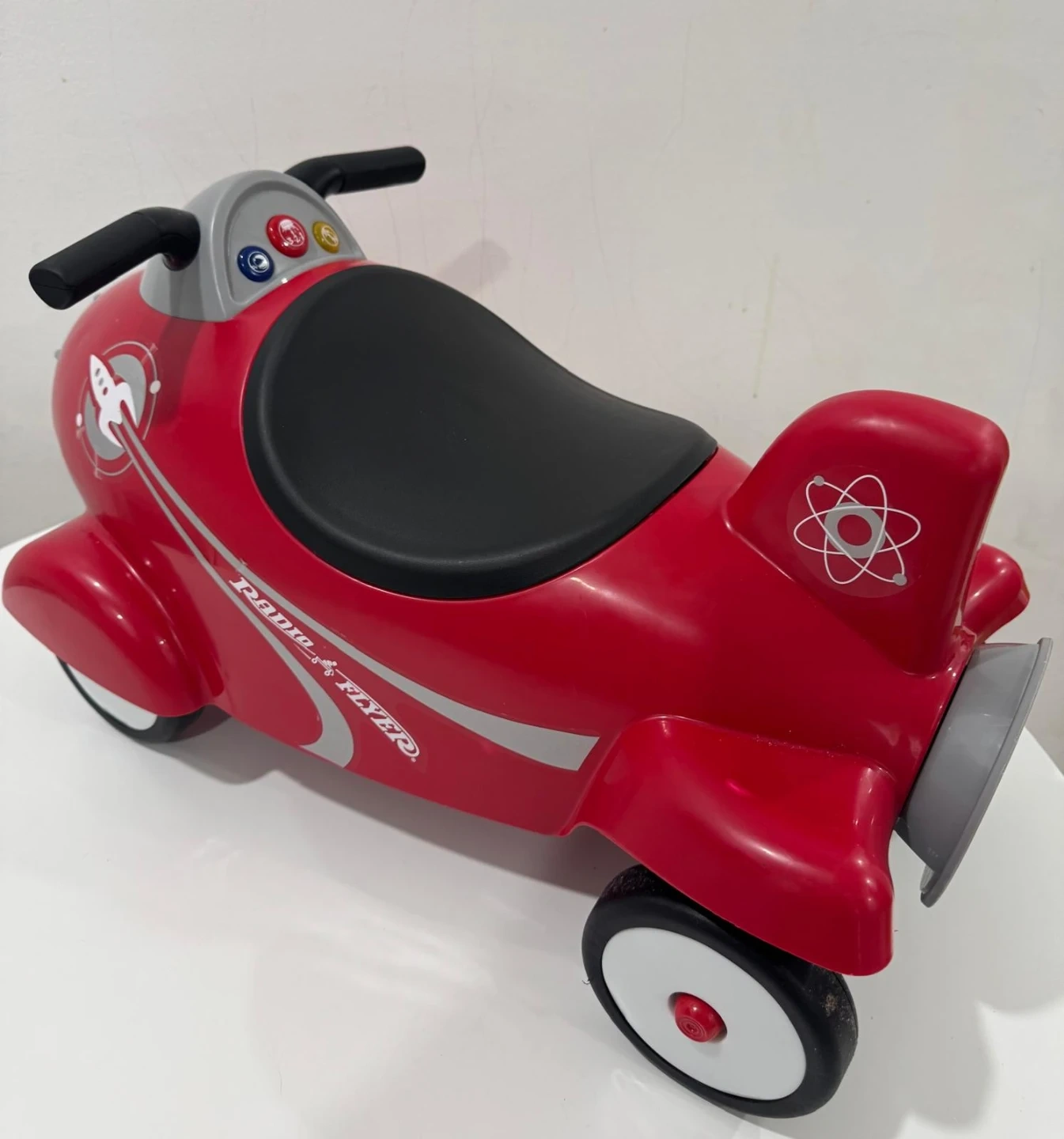 Zoom into fun with this Radio Flyer Retro Rocket Ride on toy ! It's a vibrant red color and ready for your little one's adventures.