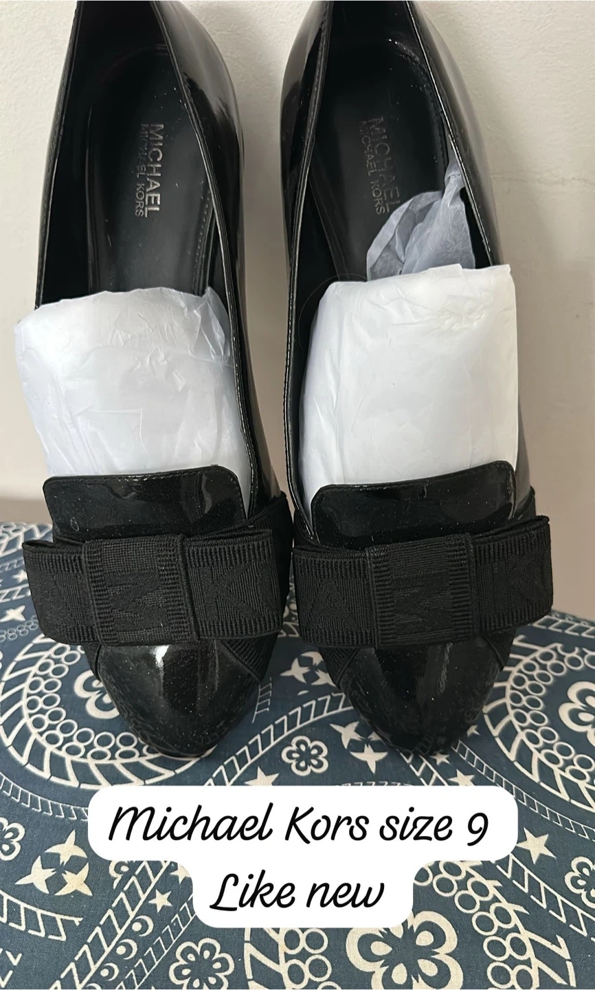 Selling a pair of Michael Kors black patent heels in size 9! They are in like-new condition and feature a cute bow detail. Perfect for dressing up any outfit