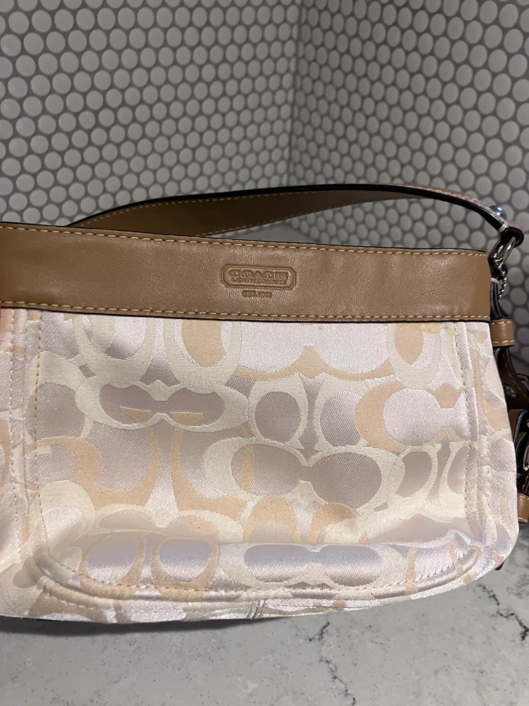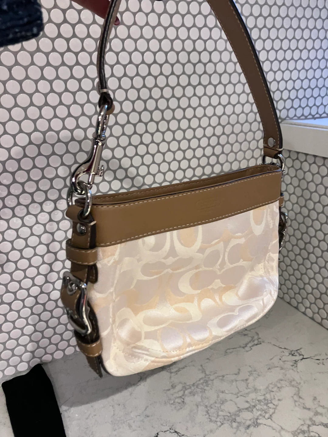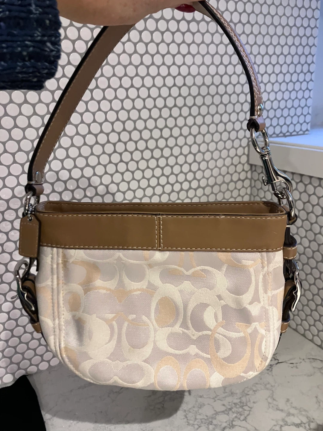 A stylish Coach handbag featuring a white and tan colour scheme. It’s in great condition and ready for a new owner!