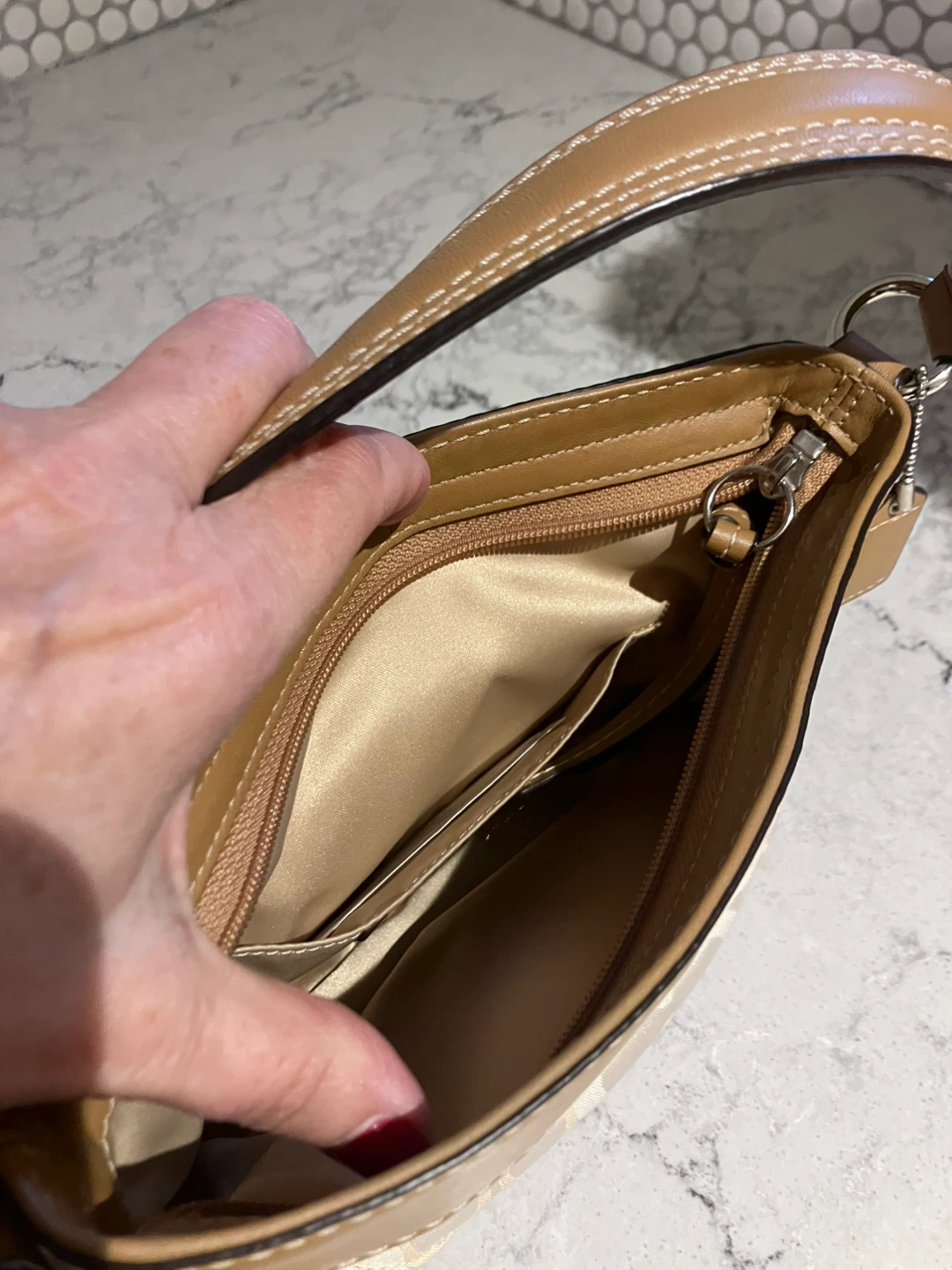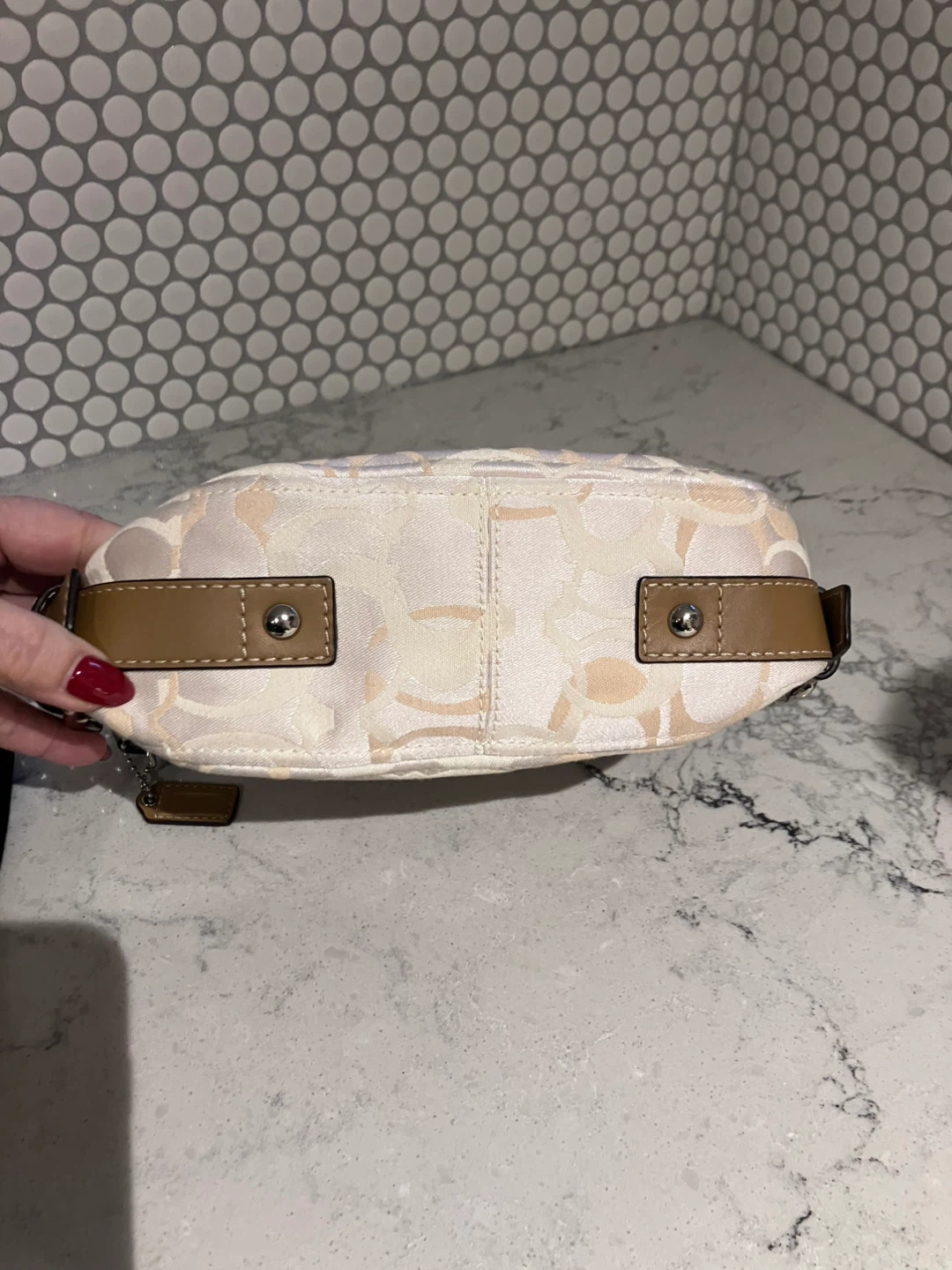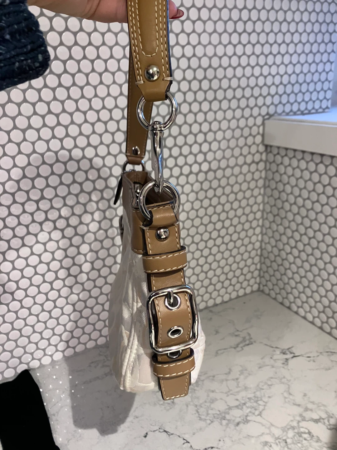 A stylish Coach handbag featuring a white and tan colour scheme. It’s in great condition and ready for a new owner!