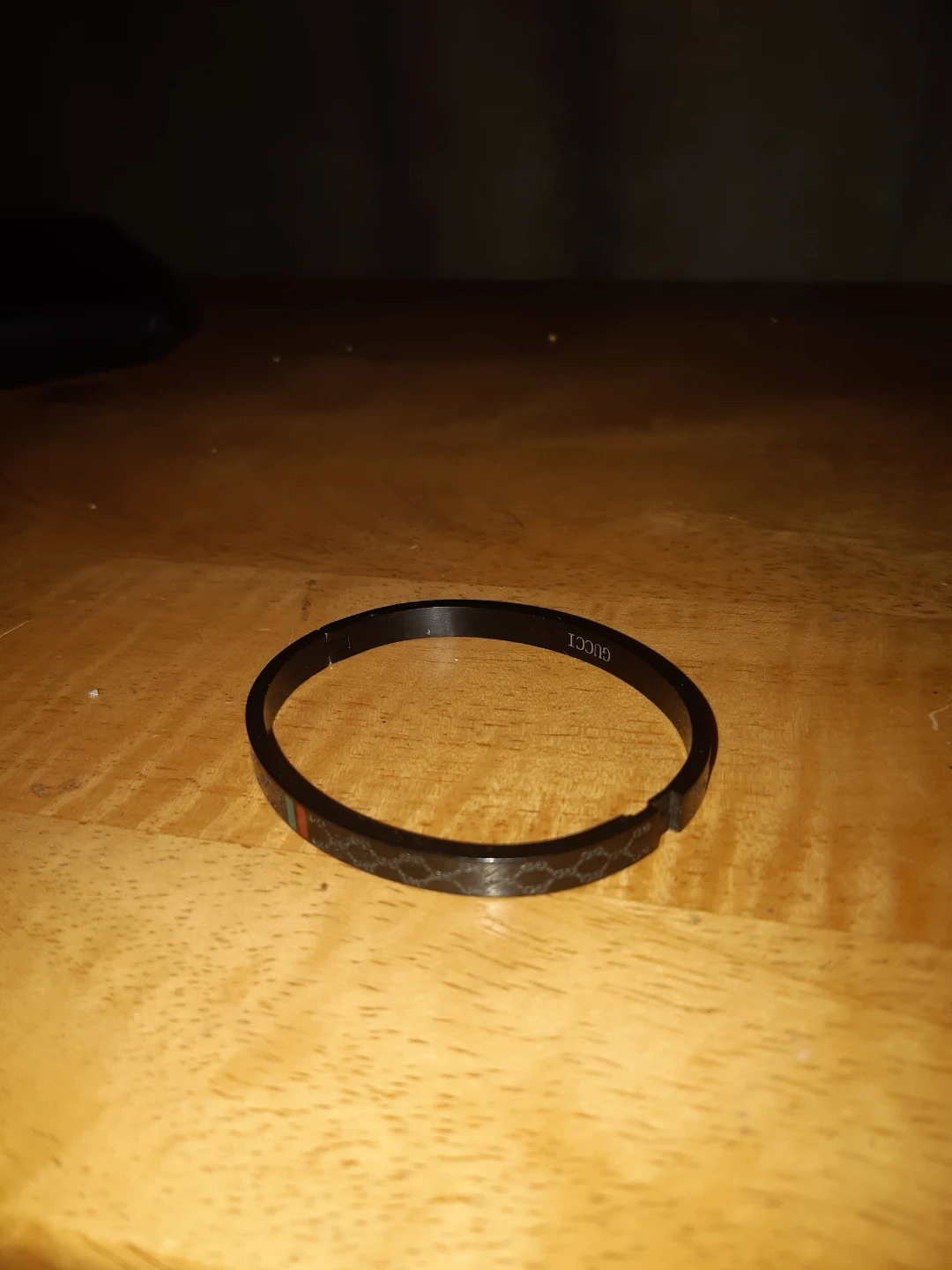 Selling a stylish black Gucci bangle! It features the iconic Gucci pattern and would make a great addition to any outfit it's Cosmetic in case you're wondering still a good price styling