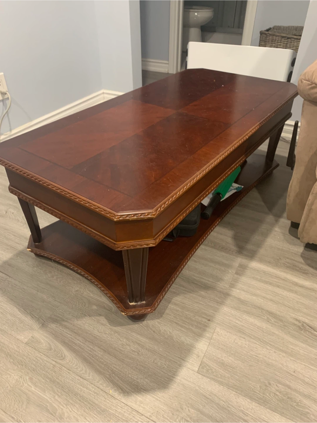Giving it away for free since I’m moving. Pick up available this Thursday-Sunday (Jan. 15-Jan. 18, 2026) Selling a lovely wooden coffee table. It has a classic design and a lower shelf for storage or display. Great for any living room!
