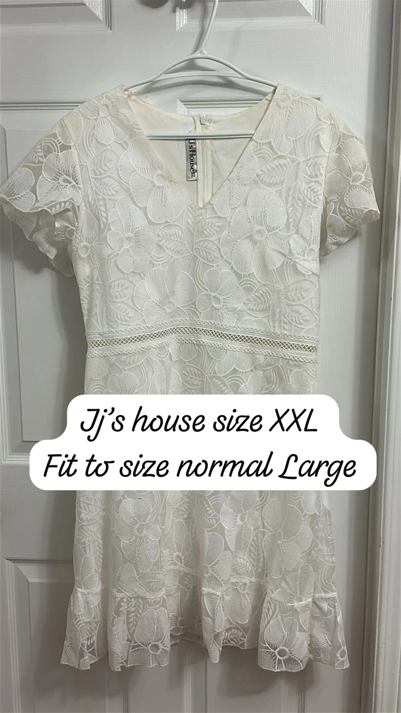 Selling a lovely white lace dress from JJ's House! The tag says XXL, but it fits more like a size Large. It's in great condition and would be perfect for a special occasion or a summer outing