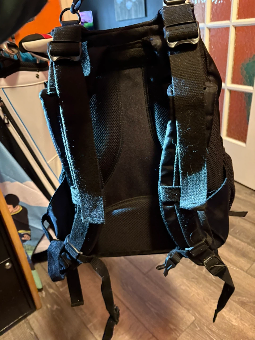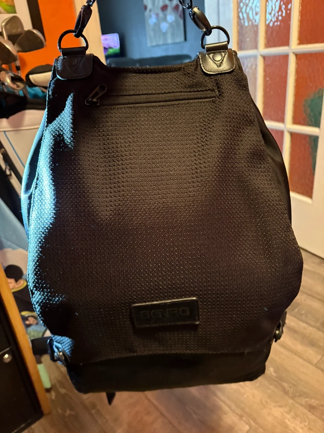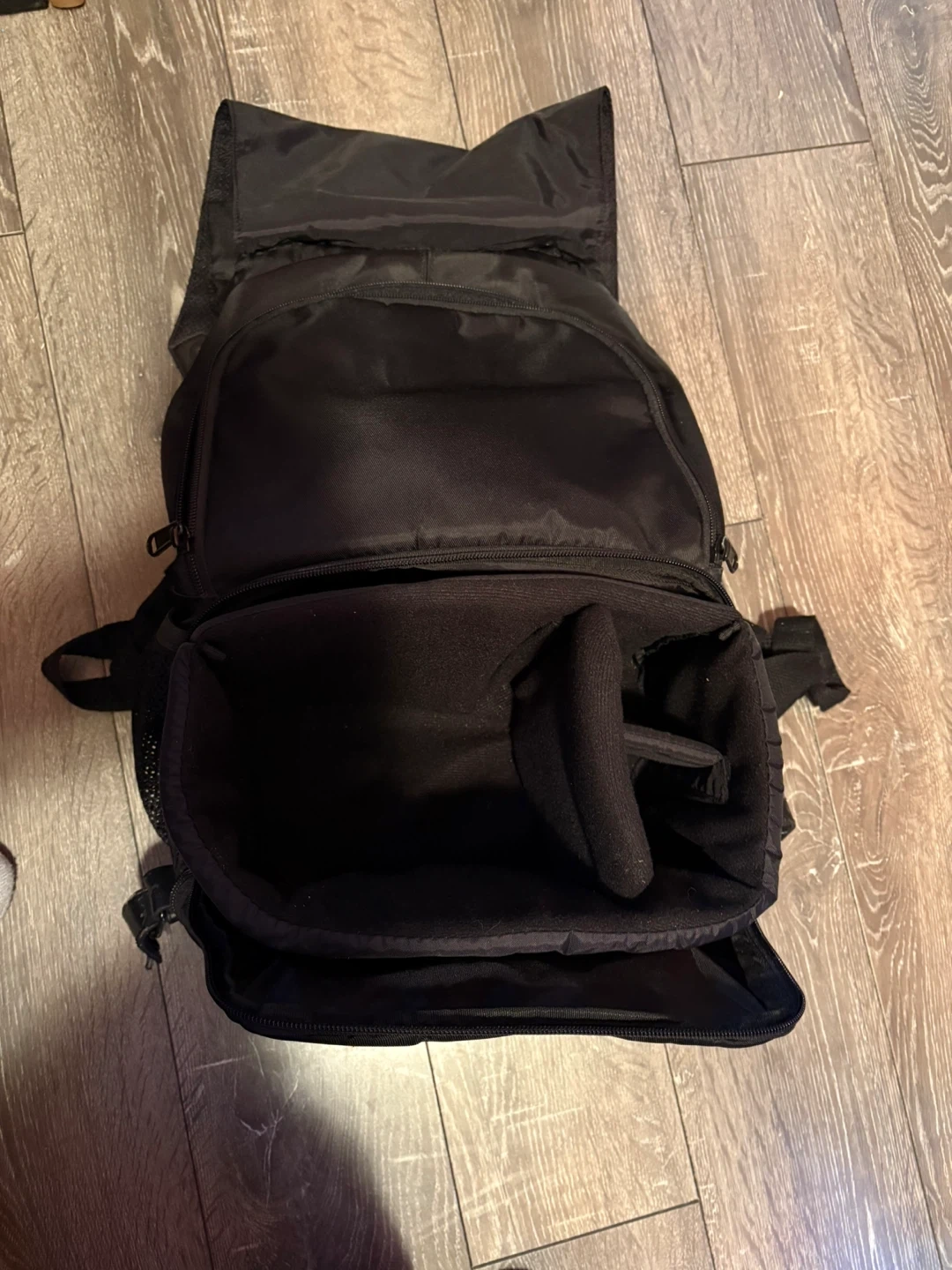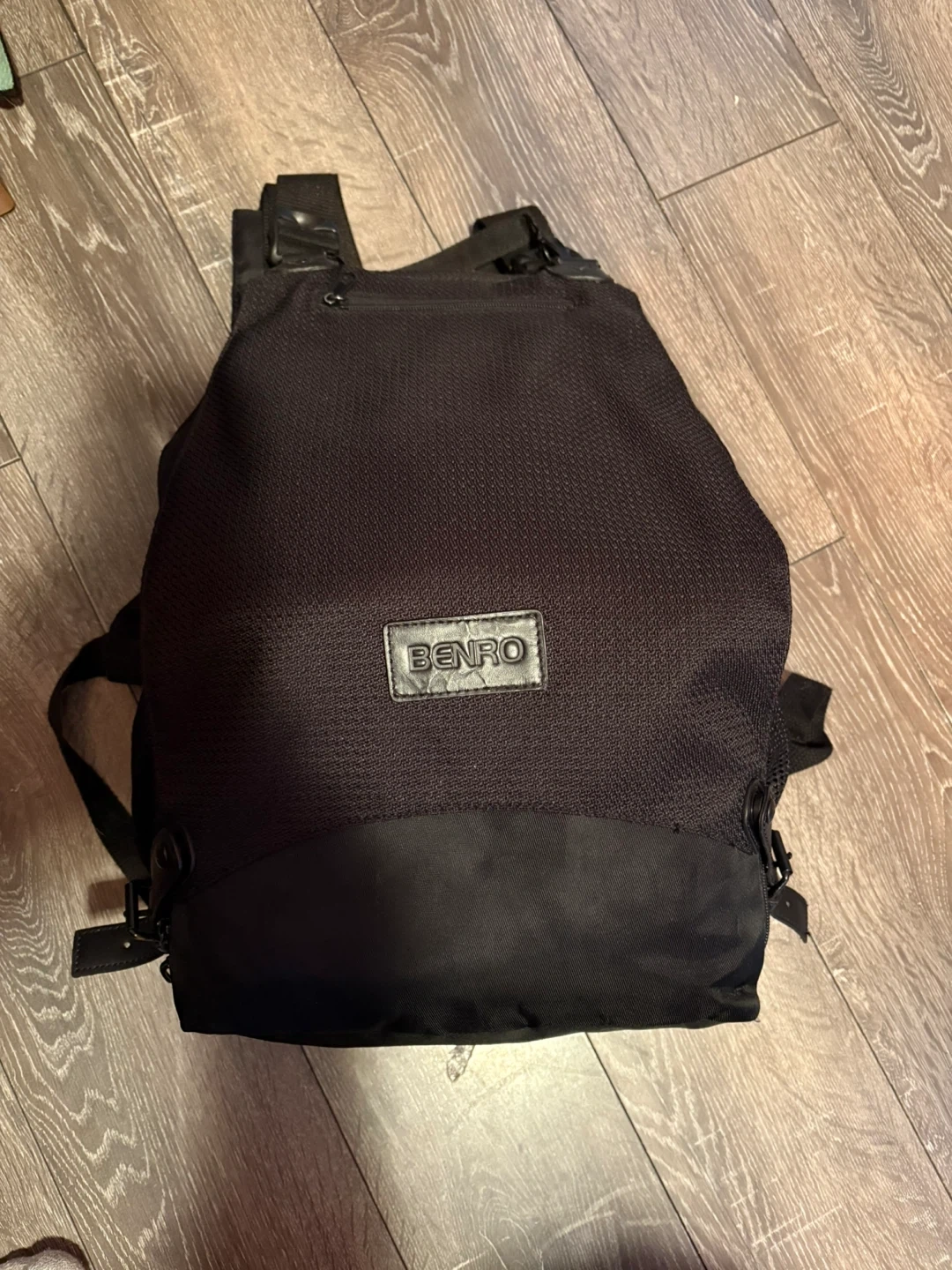 Selling a Benro camera backpack in black. It has multiple compartments and is in good condition. Perfect for carrying your camera gear safely and comfortably