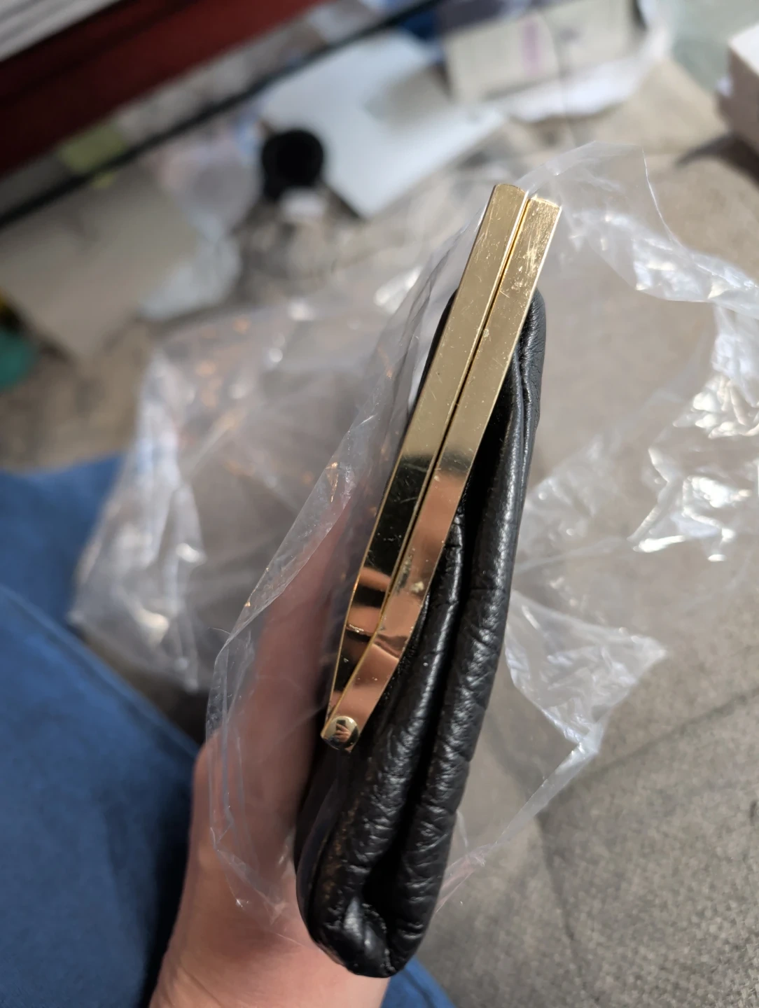 L Elegance VINTAGE Genuine Leather Black Clutch