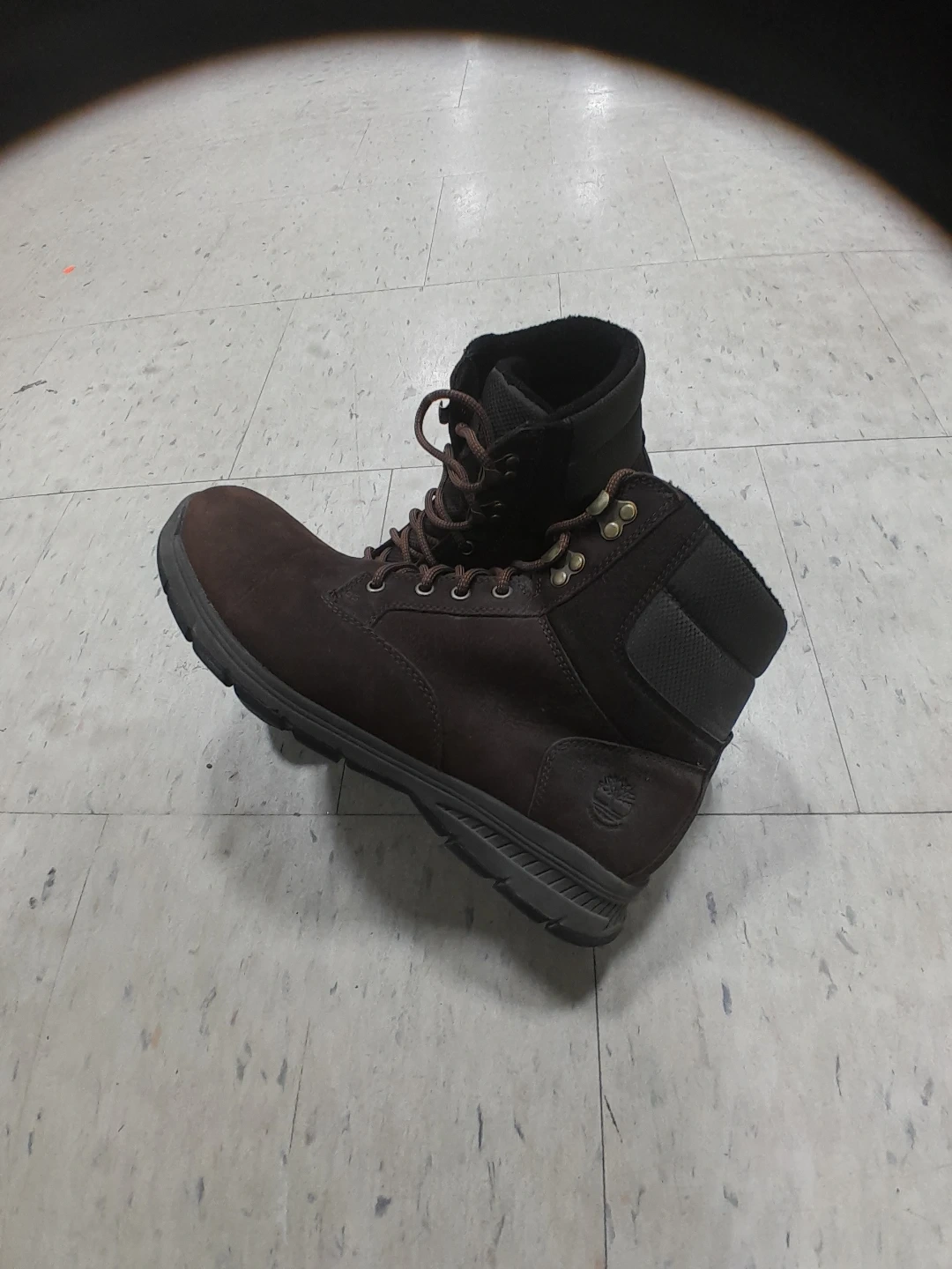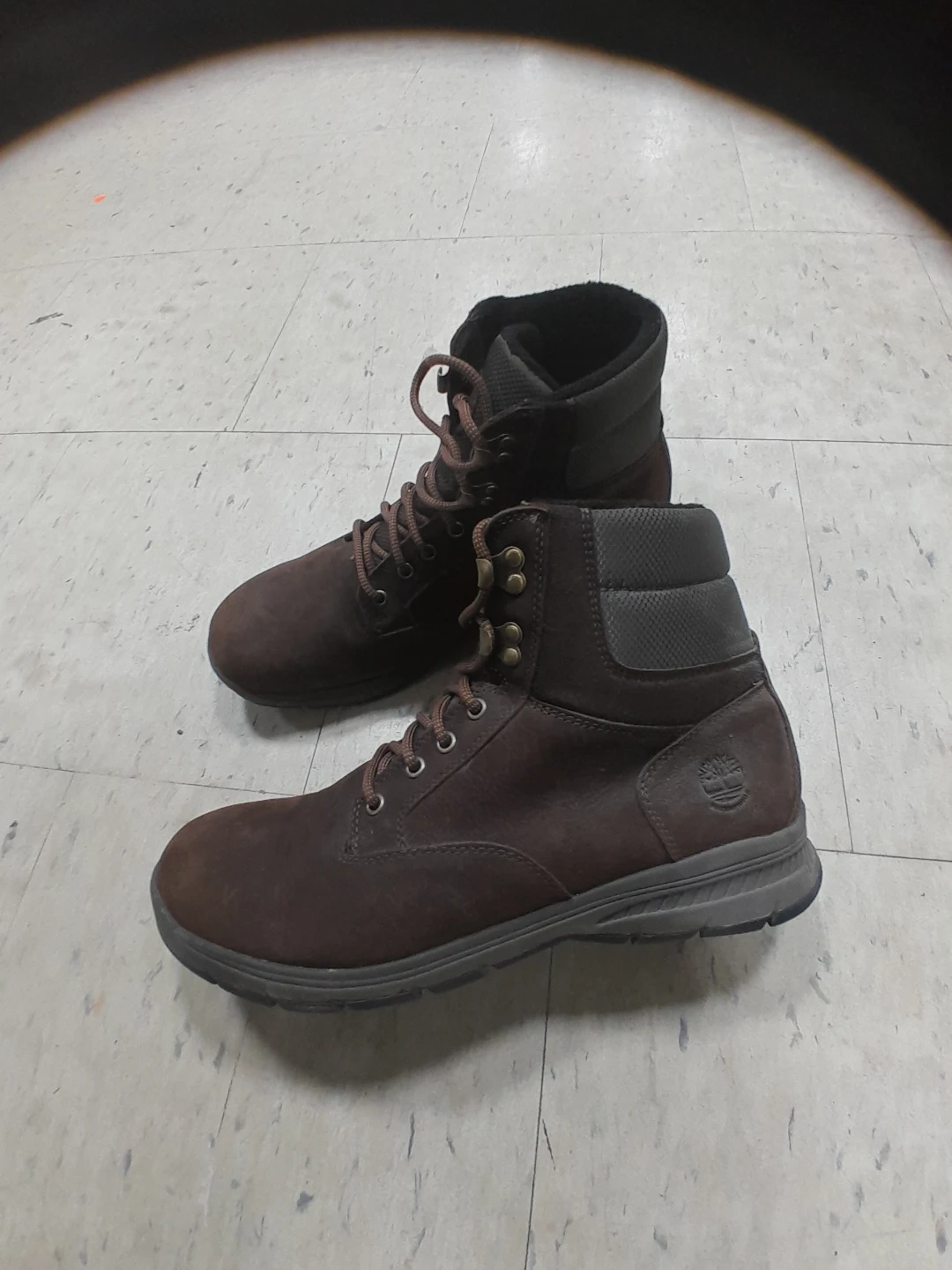 All Season Timberland boots are a dark brown colour and made of leather. They are in great condition and ready for the Canadian winter!