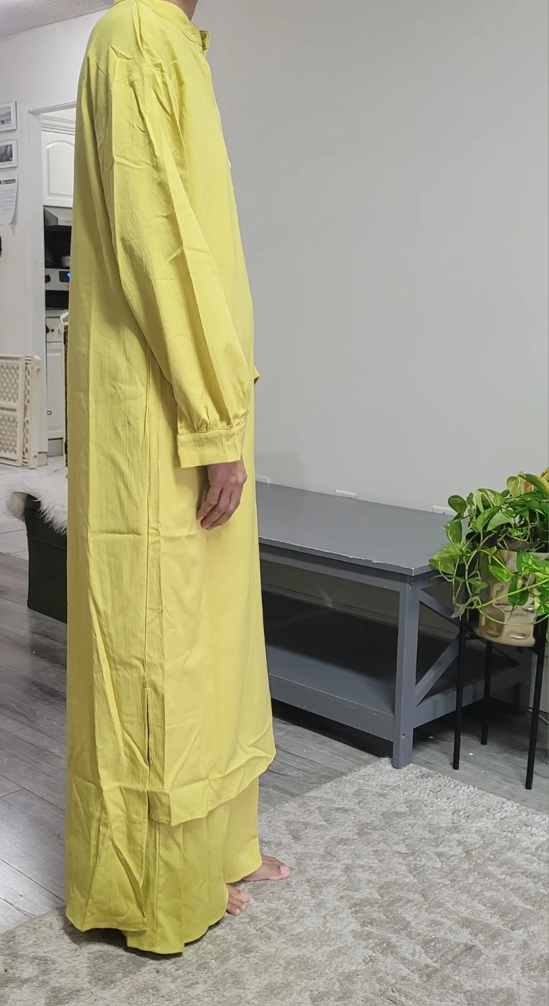 Selling a lovely two-piece set in a cheerful yellow! Based on the size chart, it looks like it would fit a size M (US size 6). It's in great condition and ready for a new home! It's brand new wear for only picher