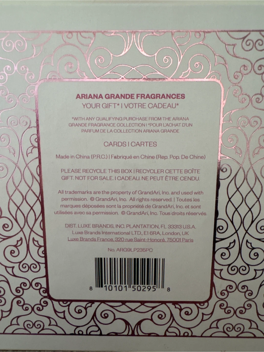 Selling a set of Ariana Grande Fragrances cards. They come in a beautiful box, perfect for gifting or collecting!