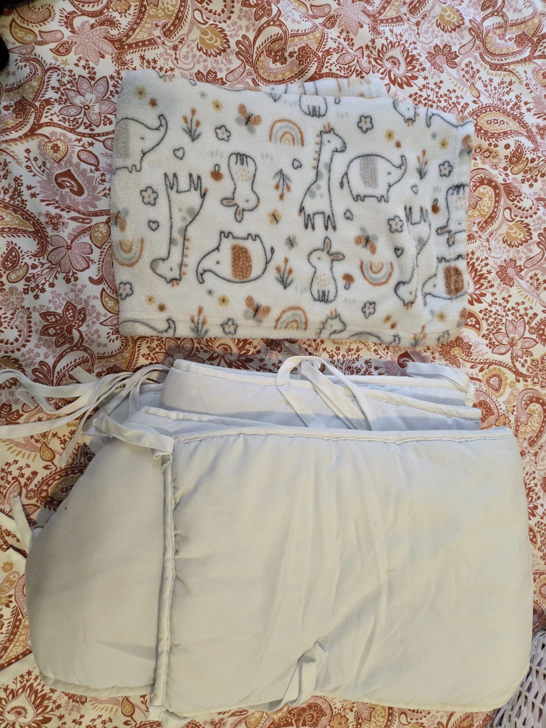 1 bed bumper white (pillows around the crib)
